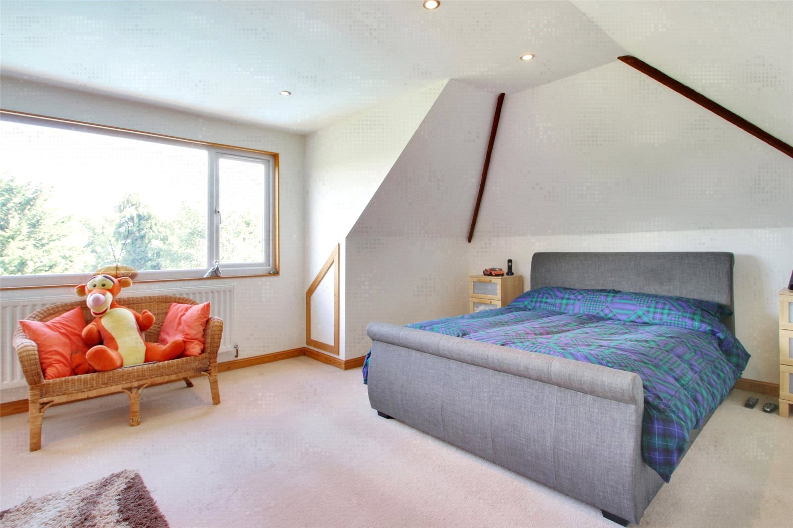 First Floor Attic Bedroom 23' x 13'7" (7m x 4.14m). narrowing to 113 Double glazed window to rear. Bespoke built-in wardrobe cupboards. Inset spotlights. Panelled corner bath. Radiators.