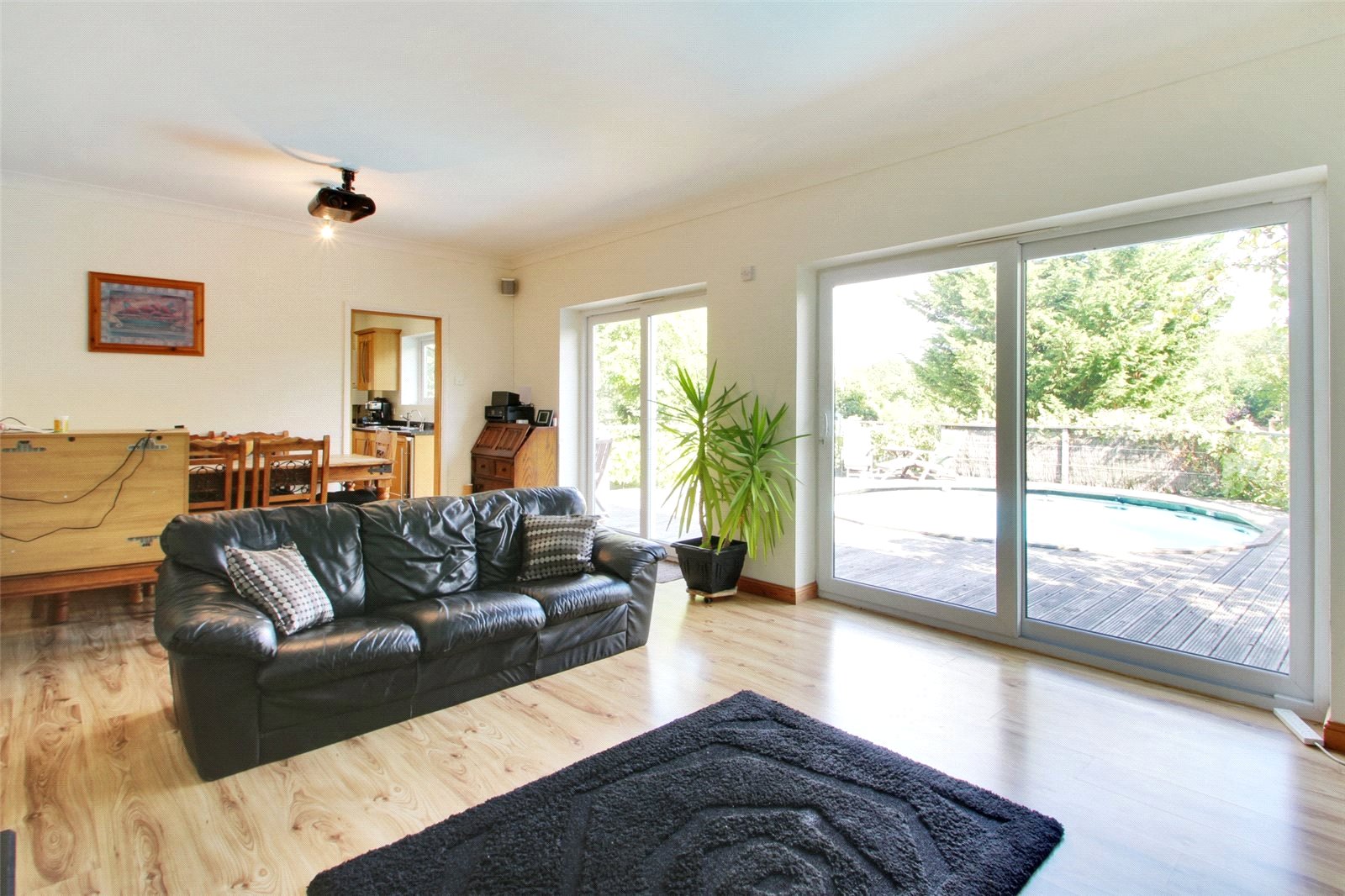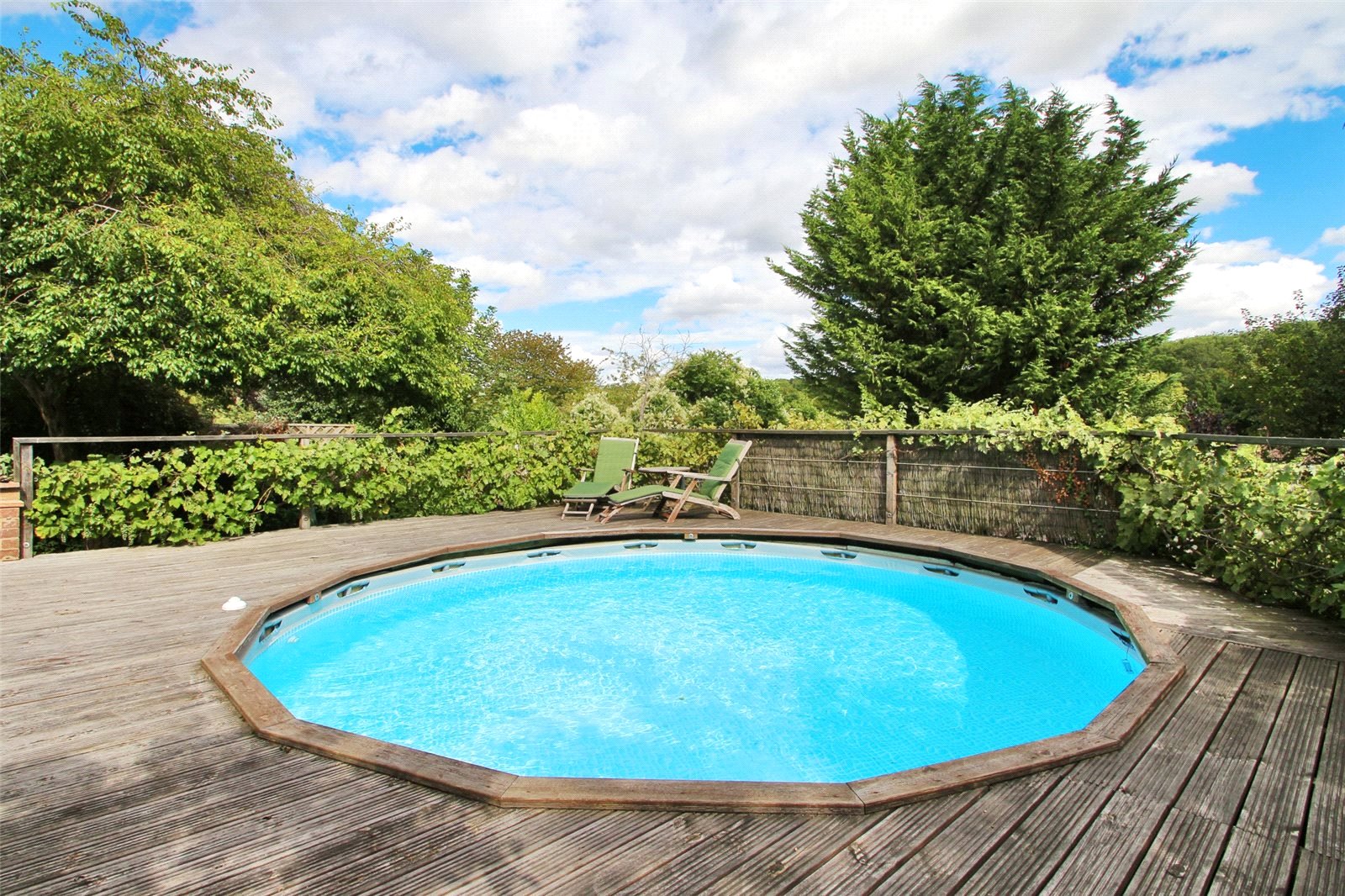 Rear Garden 64' x 43' (19.5m x 13.1m). Stunning decked area screening by mature grape vine. Heated swimming pool. Steps lead to gardens laid to lawn with screening fences and trees via side access to front. Air source heat pump. Outside lights. Water tap. Greenhouse.