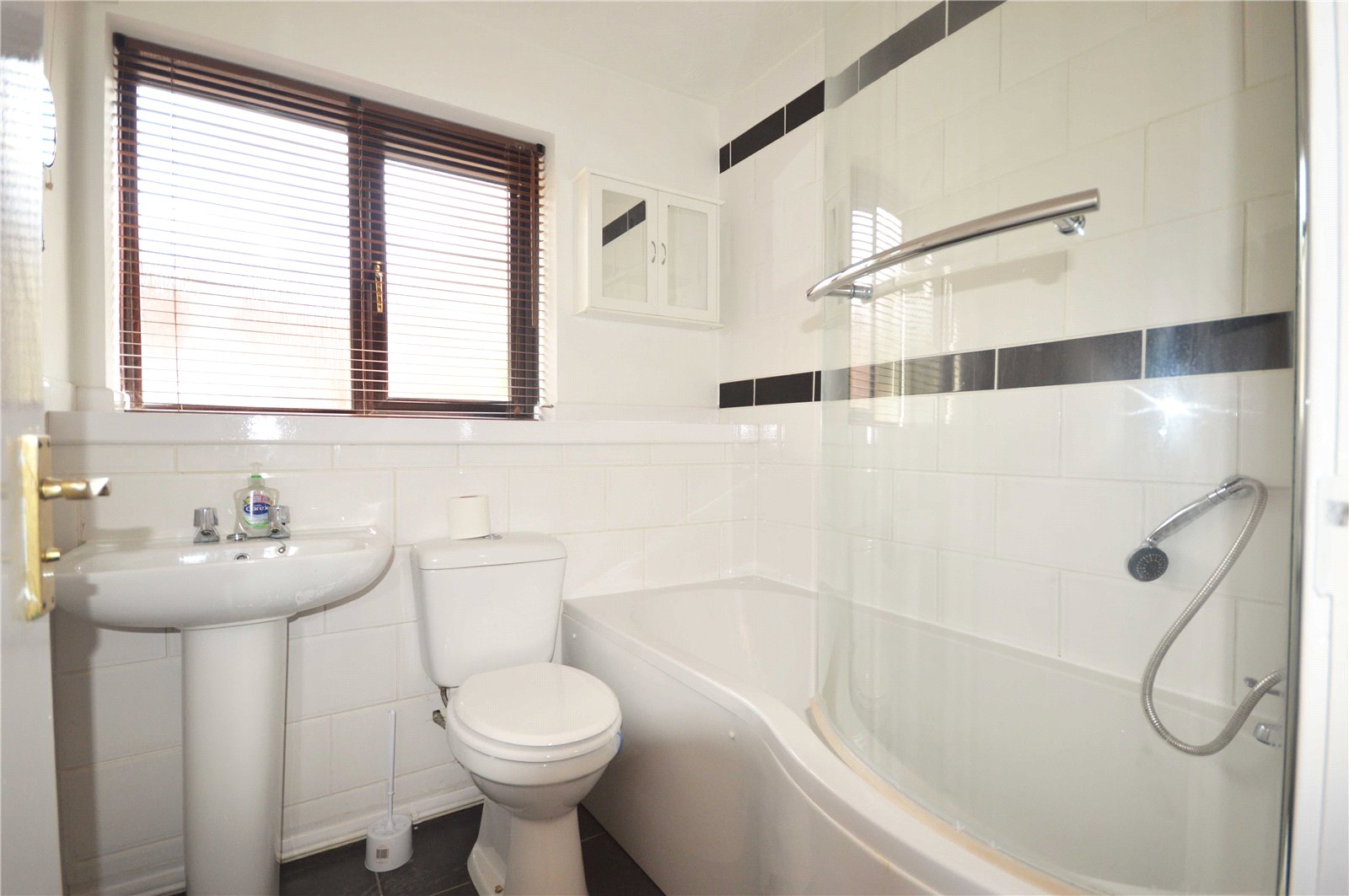 Bathroom 6'7" x 6'2" (2m x 1.88m). Frosted window to side. Shower bath with fitted shower unit and screen. Low level W.C. Pedestal wash hand basin. Local tiling to walls. Shaver point. Cupboard housing immersion heater and tank.
