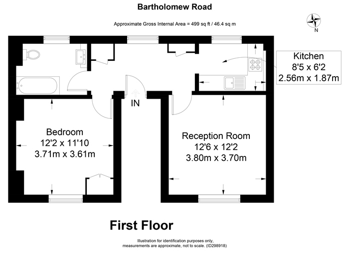 Light and bright one double bedroom property arranged over the entire first floor of a substantial Victorian House. Comprising large double bedroom with built in storage, large reception, fully equipped separate kitchen and modern bathroom. On entry the hallway has sufficient space to accommodate a work station. Light and bright throughout. Located close to Kentish Town Northern Line and Thames Link Station.