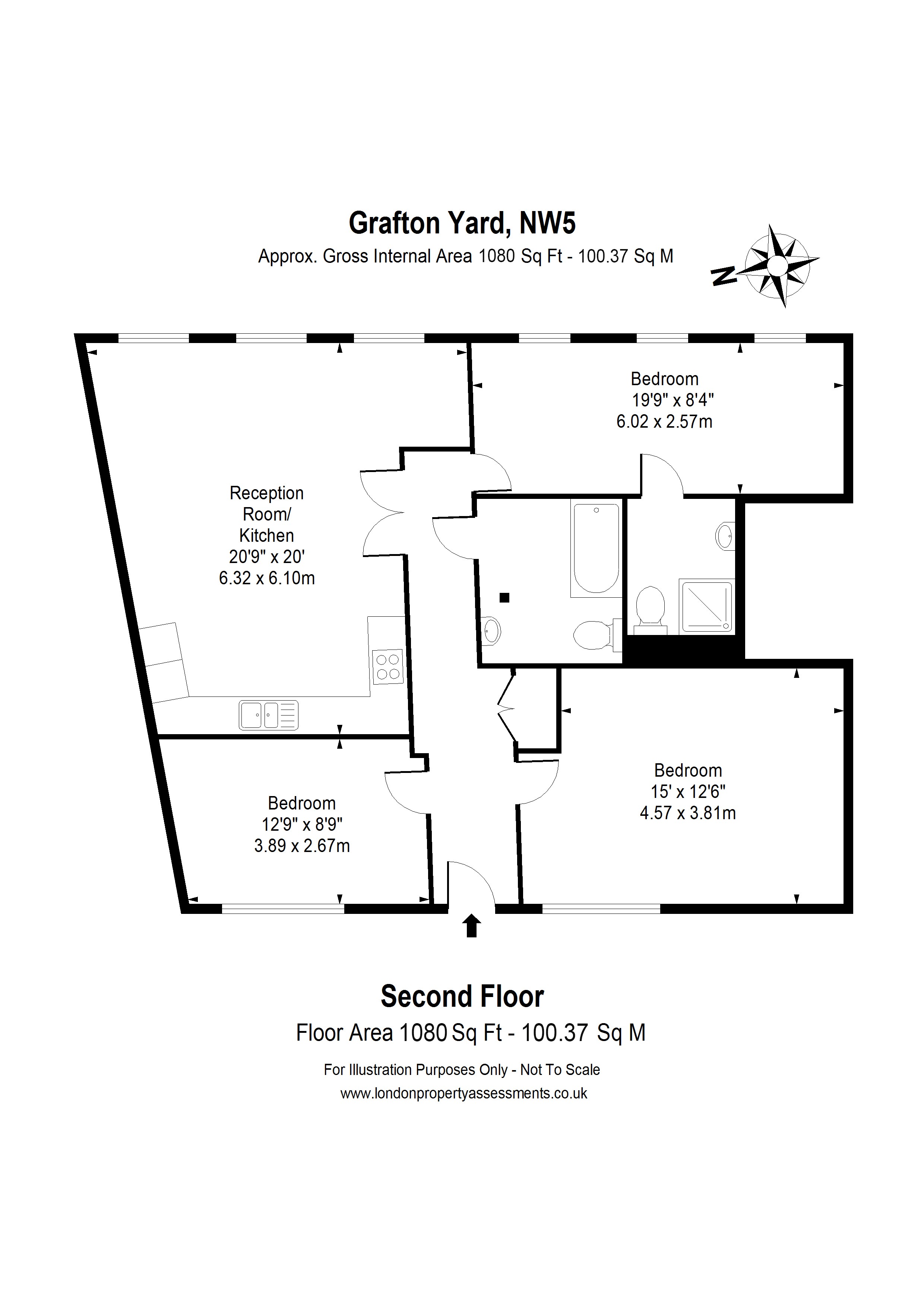 A superb three bedroom apartment arranged over the second floor of a modern gated development in the heart of Kentish town. The flat offers generous living accommodation of over 1,070 sq ft with an impressive open plan kitchen/ Reception of over 20ft with triple windows to front to ensure excellent light levels. Furthermore, there are three well-proportioned double bedrooms with an en suite shower room and separate bathroom suite. Grafton Yard is a sought after gated mews with lift access and bicycle storage located moments from the shops bars and restaurants of Kentish Town. The vibrant market of Camden Town and the vast green spaces of Primrose Hill and Hampstead Heath are also within walking distance. Kentish Town Underground and Kentish Town West are also in close proximity. The property is being sold chain free with a 997 year lease.