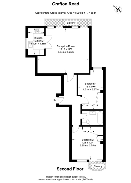 A contemporary two bedroom apartment arranged over the second floor of a modern residential development in Kentish Town. Well presented throughout, the generously proportioned (circa 829 square feet) accommodation comprises a spacious reception room with access to a balcony, fully fitted kitchen, master bedroom with fitted wardrobes, second bedroom with access to a balcony and a smart fully tiled modern bathroom. Grafton Road is an increasingly popular residential location (also home to John Rankins Annroy Photo Studios adjacent ) moments from Kentish Towns main shopping areas and is brilliantly positioned for various rail (Kentish Town West, Kentish Town), bus and underground (Northern Line from Kentish Town) transport links. A short walk from Parliament Hill Fields, Hampstead Heath and Chalk Farm.