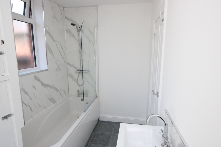 3 bedroom bay fronted property situated close to local amenities and schools. On the ground floor is an entrance hall, two separate reception rooms with laminate wood effect flooring, modern kitchen with fitted oven/hob and the first of two bathrooms (three piece bathroom with shower over the bath).