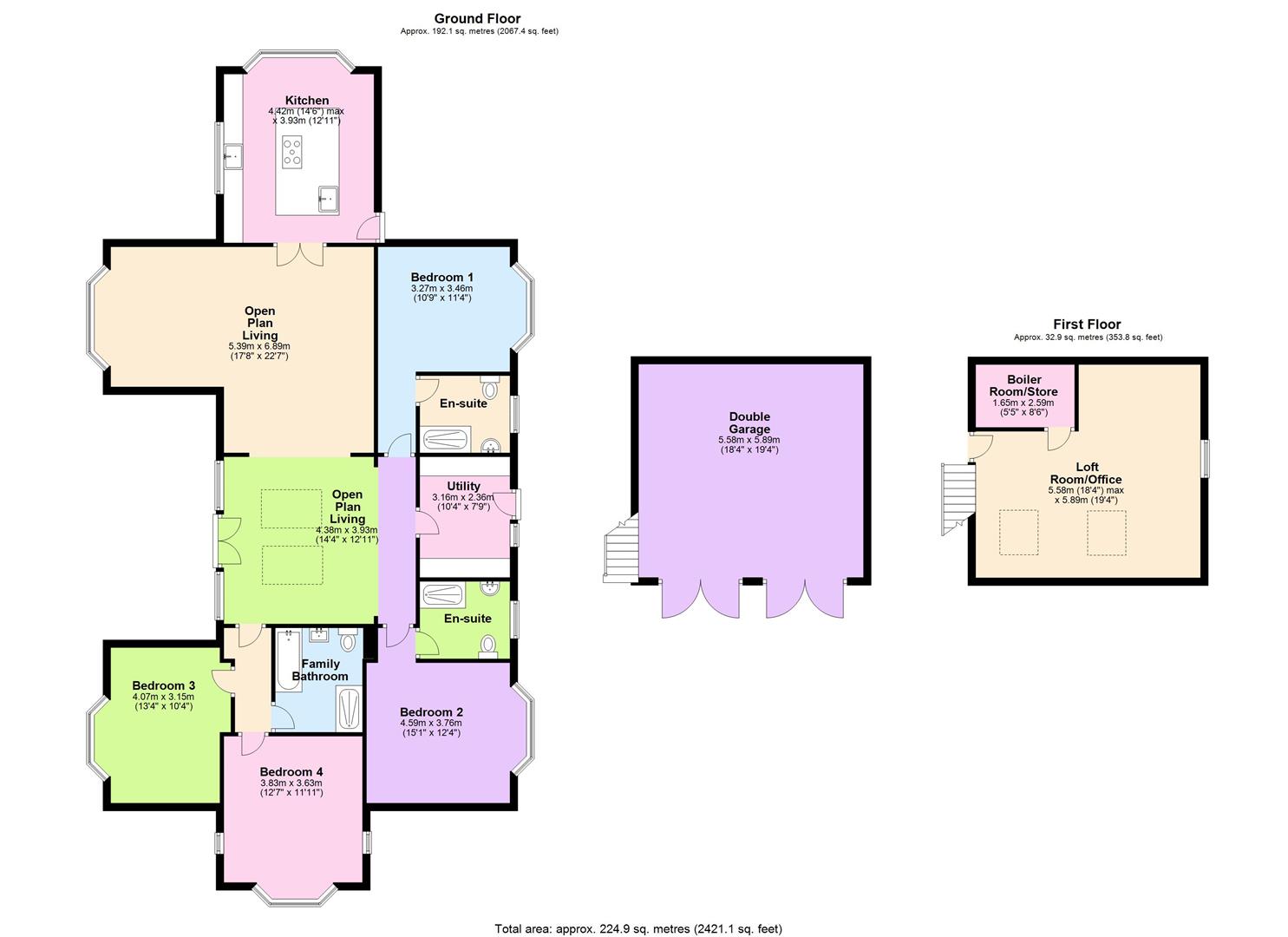 There are also four double bedrooms, two with ensuite shower rooms and a family bathroom serving the other two. To the rear is a separate utility room or rear hall leading out to the driveway.