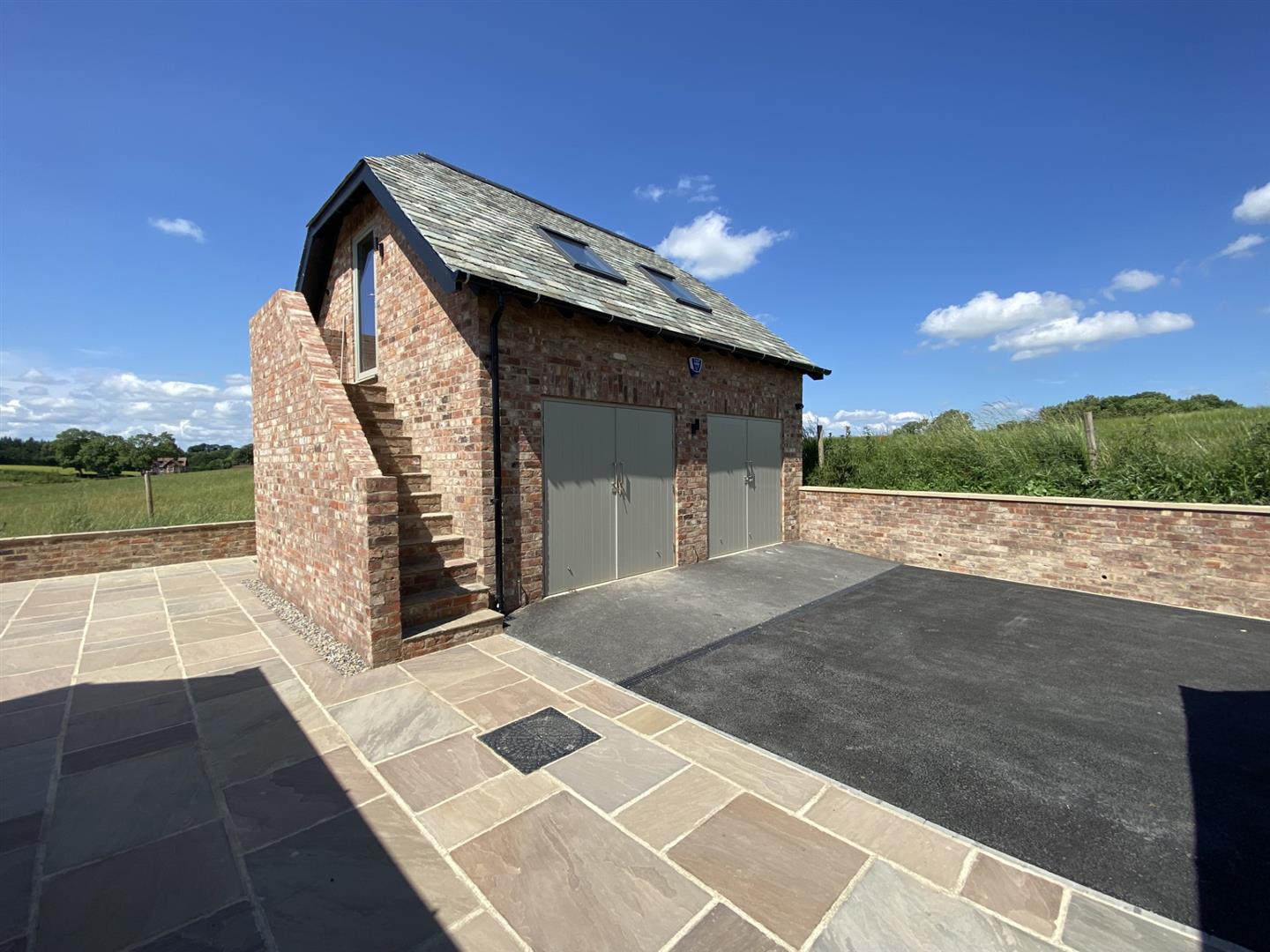 Outside the property is approached on a private road from the A6055 to the private tarmac parking area and driveway which leads to the rear to a double garage with a loft room over that would make a superb at home office or gym with attractive views over fields to the side. To the side of the garage is a further paved seating area ideal for entertaining overlooking the lawned garden.
