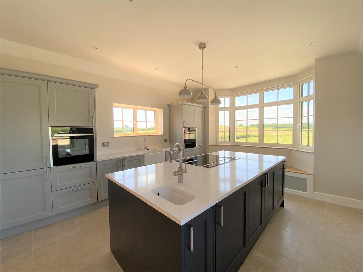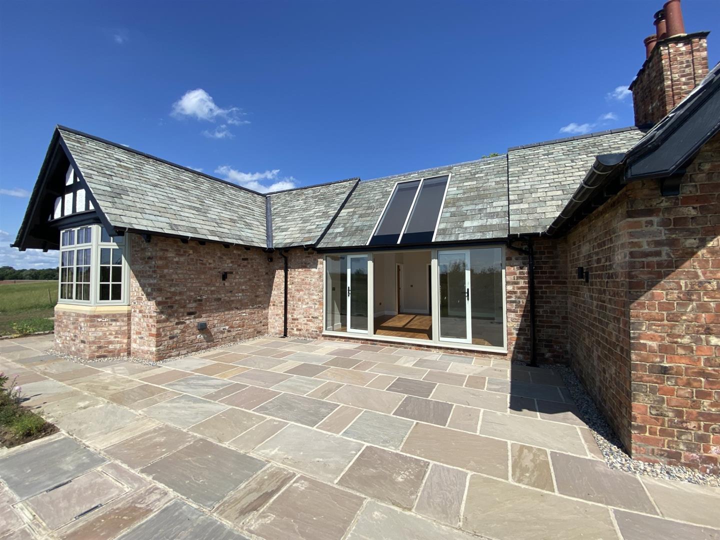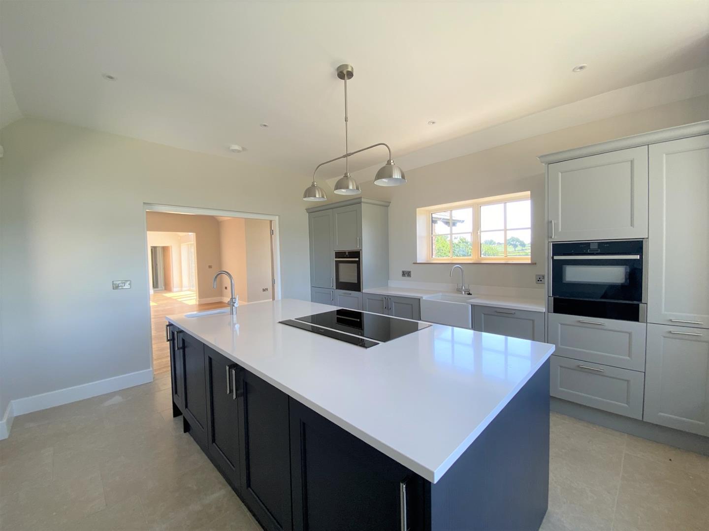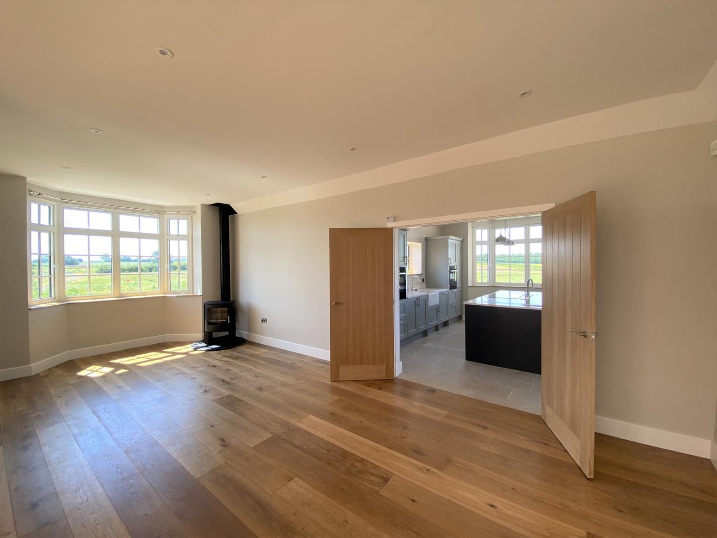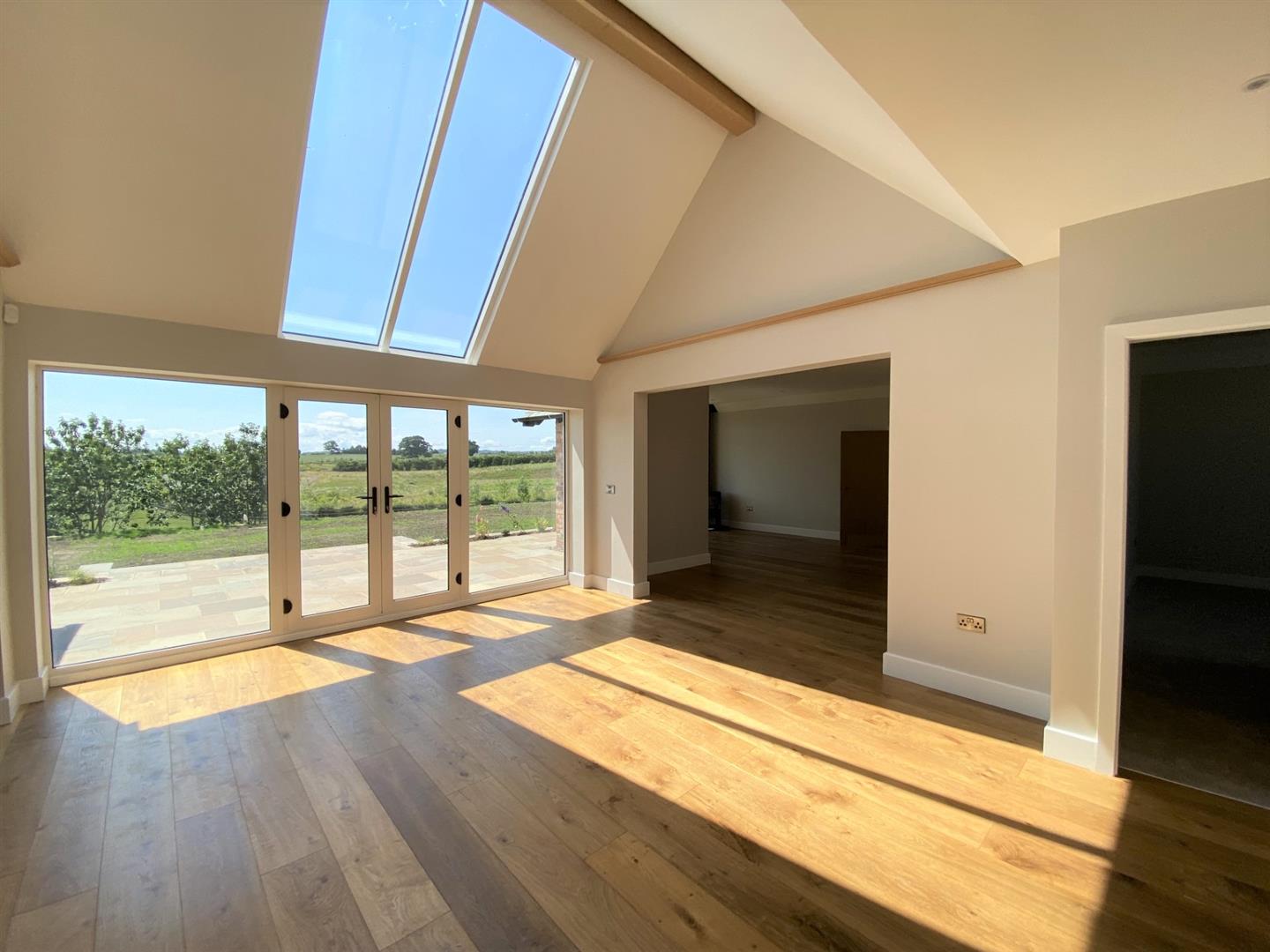 Description - The spacious accommodation is heated via a gas (LPG) fired underfloor heating system and there is the benefit of solar panels too, making it an efficient home to run. The property has a great layout including a stunning kitchen with Neff appliances including an induction hob, oven, grill with warming drawer and a dishwasher and there are oak double doors leading to an open plan living area with wood flooring, space for sofas and dining furniture and a log burning stove for cosy evenings. Open Plan living area is also open to a further, impressive living area or hallway with skylights creating a fantastic bright space with Double glazed windows and French doors out to an attractively paved seating area overlooking a lawned garden.