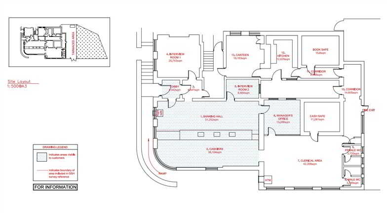 - Heating is provided via Oil Fired System supported by Ceiling Mounted Air Conditioning Unit in the Main Bank Hall Area.