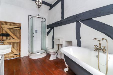 On the first floor there is wooden floor boards throughout, two double bedrooms and a four piece bathroom, complete with a free -standing claw foot bath and shower cubicle. A utility cupboard on the landing houses the washing machine.