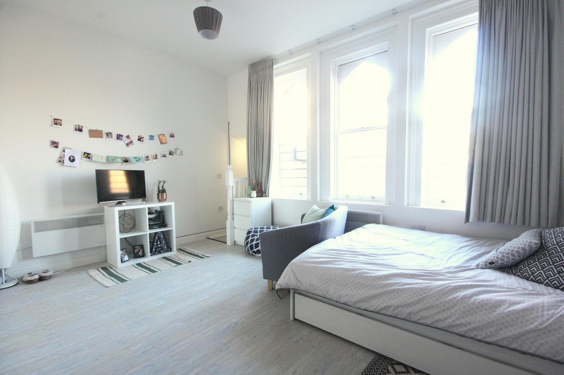 This stunning first floor studio apartment includes a separate kitchen, large studio room with a bay window and separate...