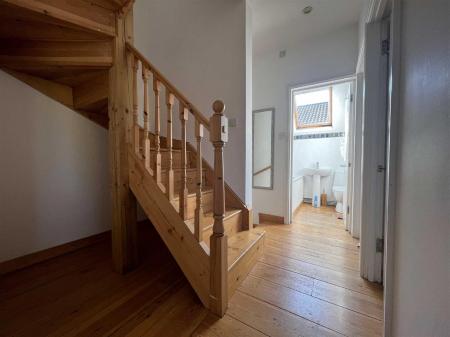Entrance Hall - Double radiator, stairs off to first floor landing, double glazed window to side, inset timber flooring.