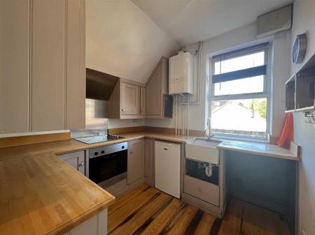 Kitchen - 2.51m max x 2.59m max - Double glazed window to rear. Re- fitted kitchen with beech work top surfaces, Butler sink with antique style mixer tap, wall cupboards, base units, fitted ceramic hob and stainless steel oven, timber floor, wall mounted boiler, extractor fan