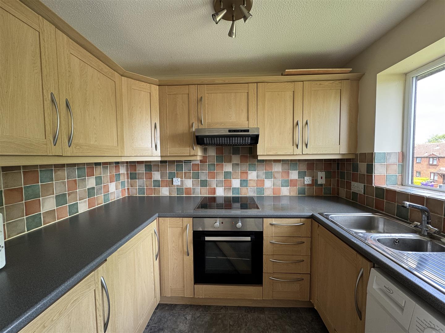 Kitchen - 8'6 x 6'6'' - Double glazed window to front, work top surfaces, stainless steel single drainer sink unit with mixer tap, wall and base units, part tiled walls, ceramic tiled floor, built in electric oven, hob and extractor hood, washing machine, built fridge and freezer.
