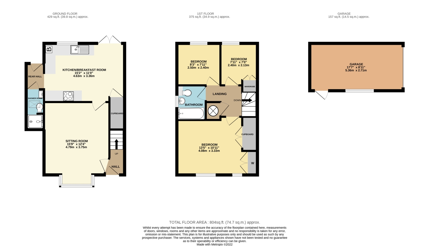 In all, the property benefits from 3 bedrooms including a good-sized master bedroom with fitted wardrobes and further storage over the stairs, alongside 2 single bedrooms, one also with fitted storage.