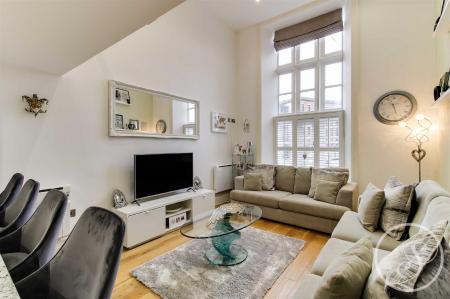 Living Area - Amazing double height living area with large double glazed feature window, engineered solid oak flooring, and two wall mounted electric heaters.