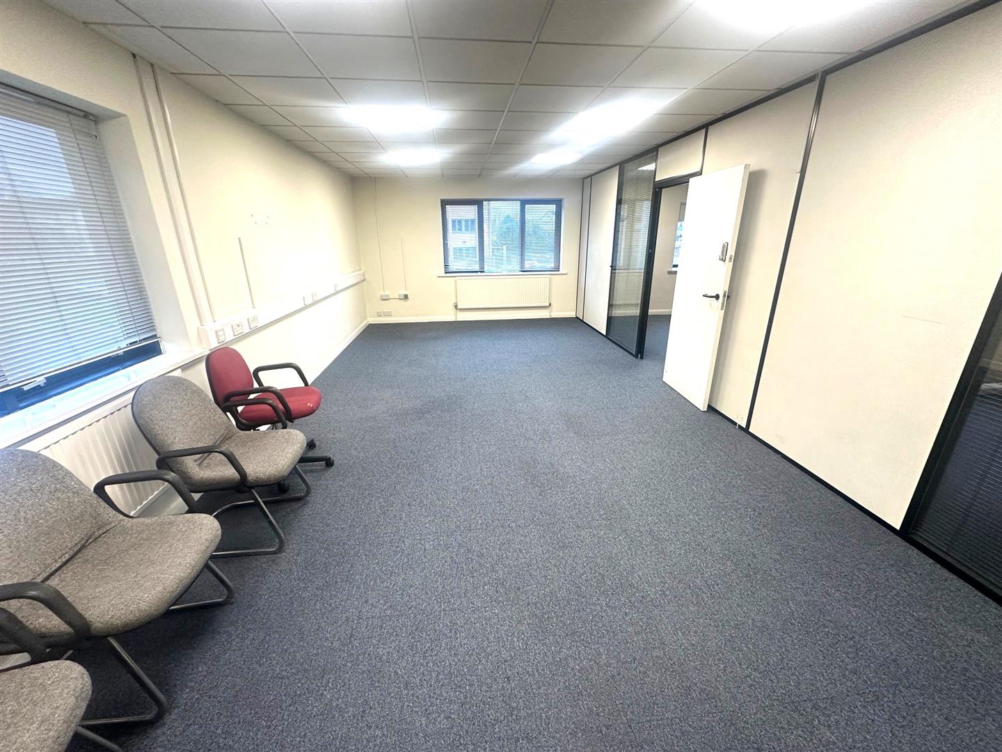 Modern First Floor office suite open-plan and private offices with 5 car parking bays.