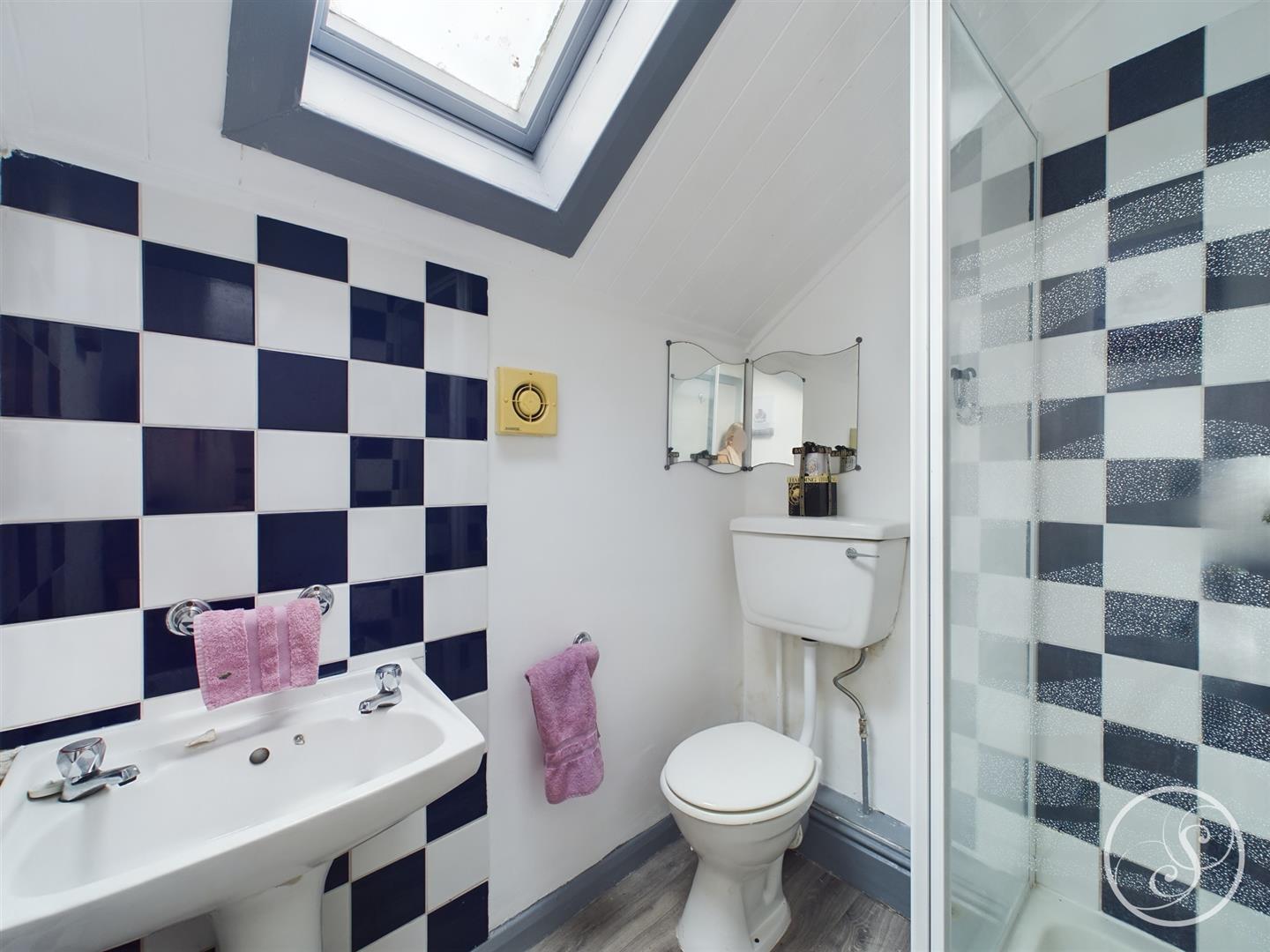 Shower Room - 2.144m x 1.453m - Frosted double glazed window, shower cubicle with tiling and wall mounted shower, wash hand basin on pedestal with splash back tiling, low level WC with flush, extraction unit.