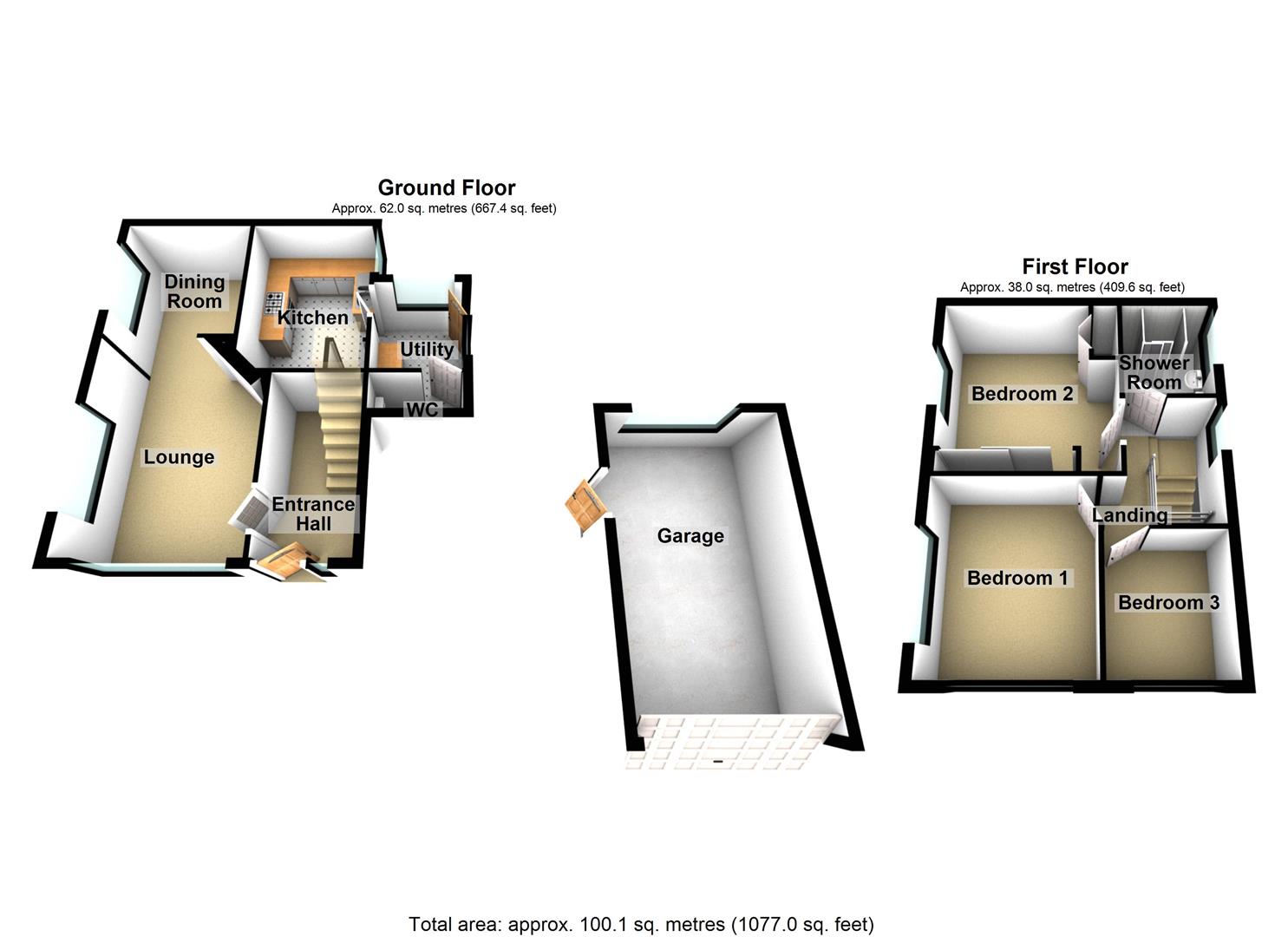 There are also private, easy maintenance gardens, off road parking for two cars and a detached garage.