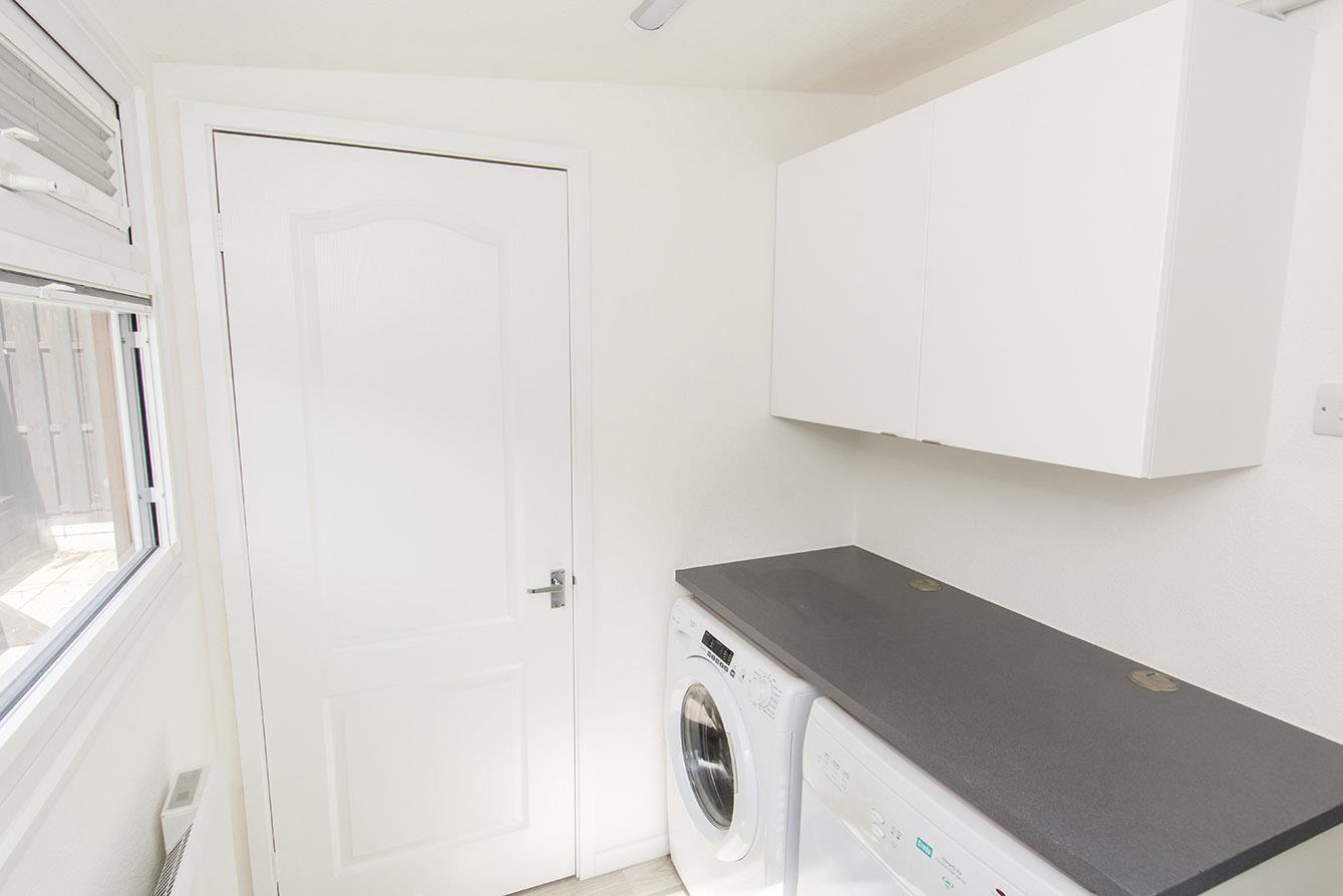 Utility Room - 1.83m x 2.11m (6'0" x 6'11") - Fitted wall units and laminated work surface. Space and plumbing for automatic dishwasher. Double glazed windows with fitted blinds to the rear and side elevations. Double glazed door to the rear garden. Door to:-