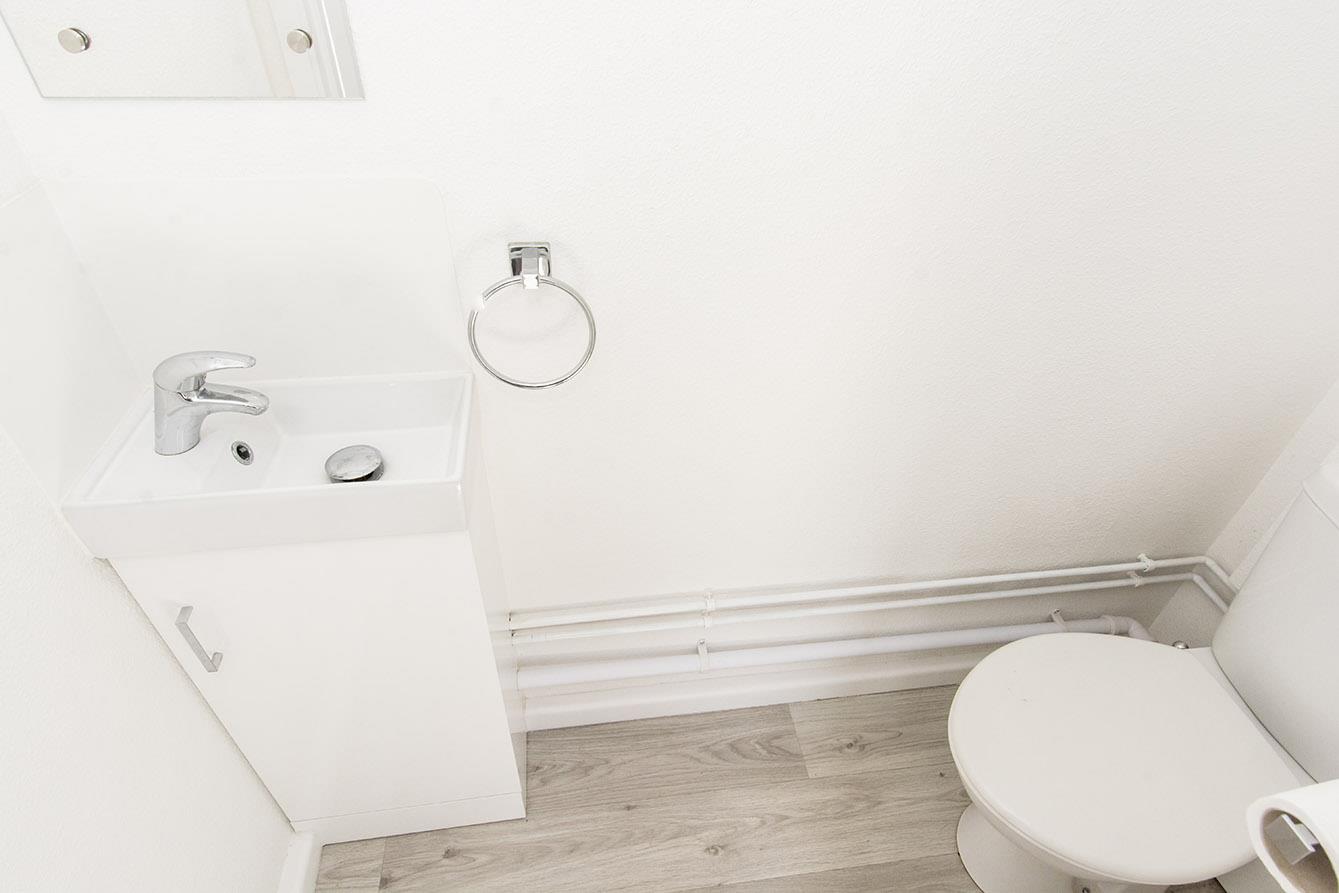Downstairs Wc - Wash hand basin and low level WC. Wood effect vinyl flooring. Extractor fan.