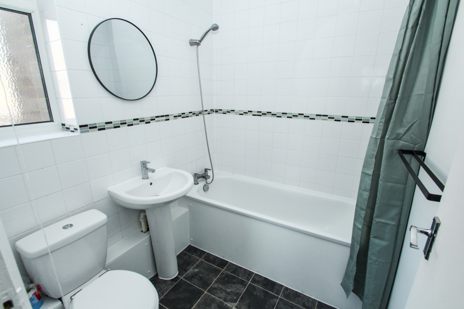 Finally, the three piece bathroom is fully tiled, has a shower fitting to the bath with shower curtain and towel rail.