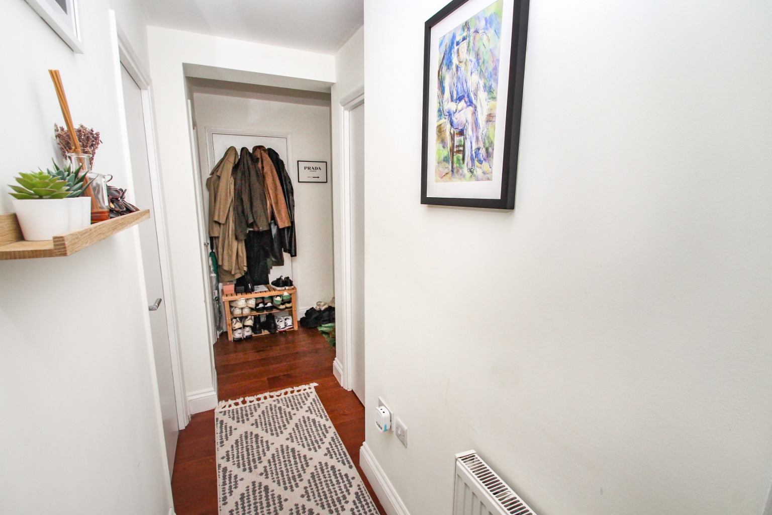 Once inside this charming home, the entrance hall has an area for hanging coats and removing shoes, with a large storage cupboard for bulky items such as the vacuum cleaner.