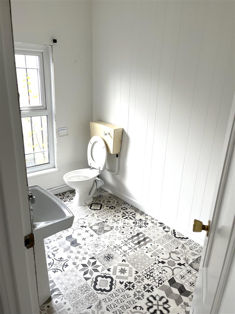 Toilet: - 2.8 x 1.6 (9'2" x 5'2") - Low Flush W.C. Pedestal wash hand basin. Cushion flooring.