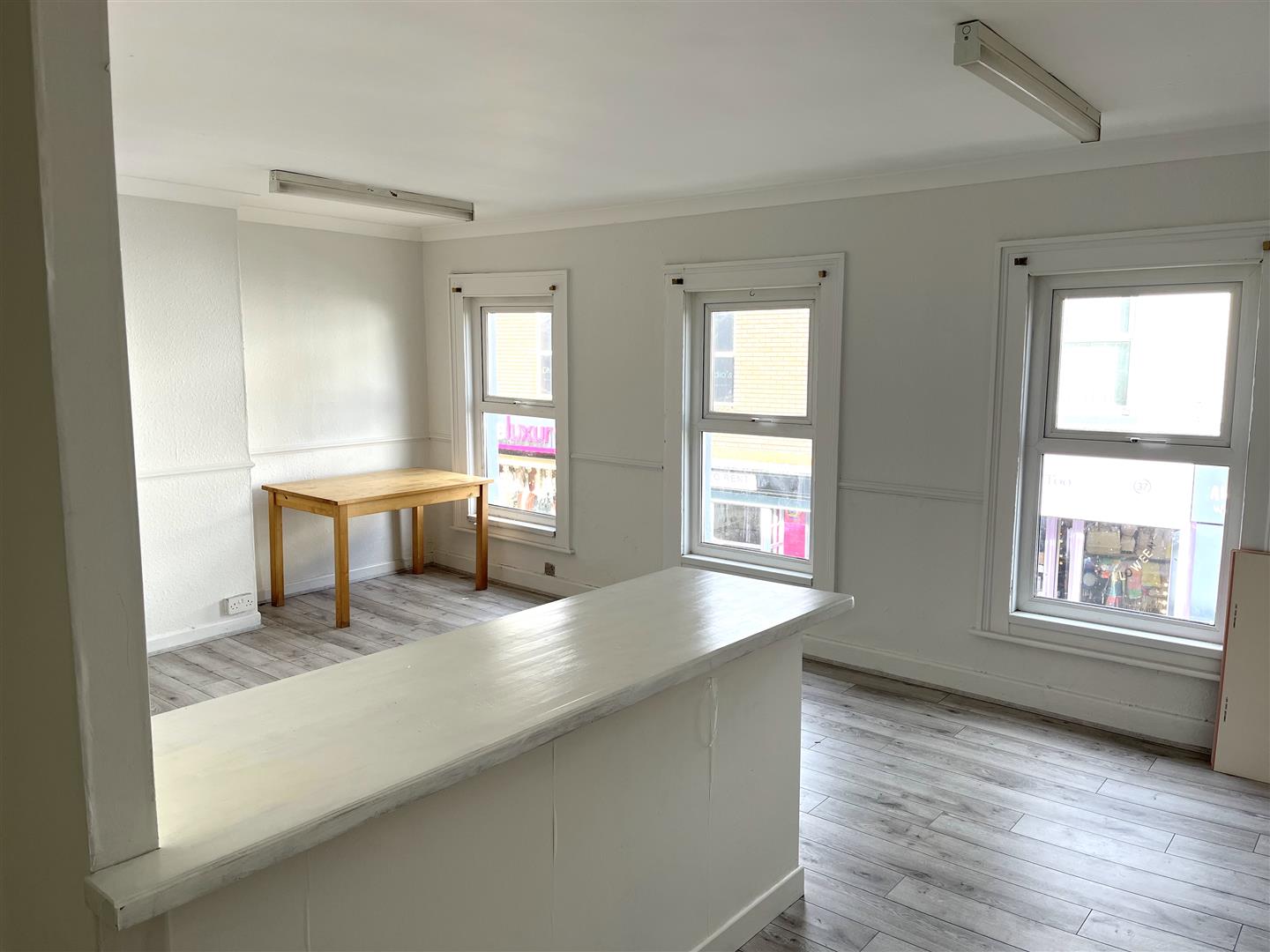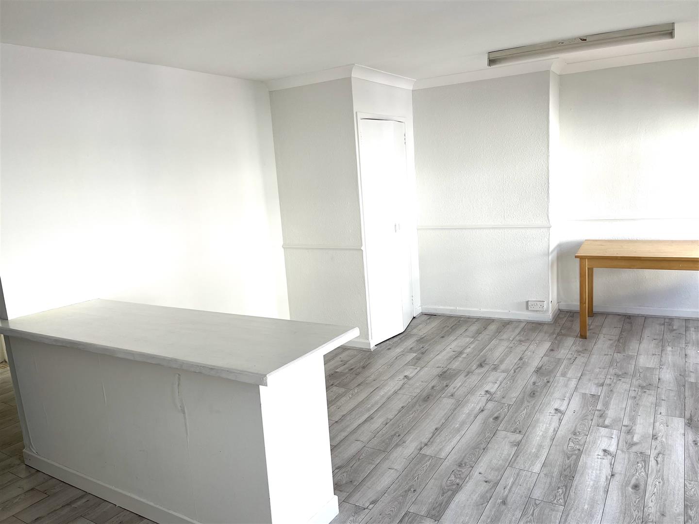 Office No.1 - 5.6 x 3.8 (18'4" x 12'5") - Laminate flooring. Strip lighting. Built in storage.