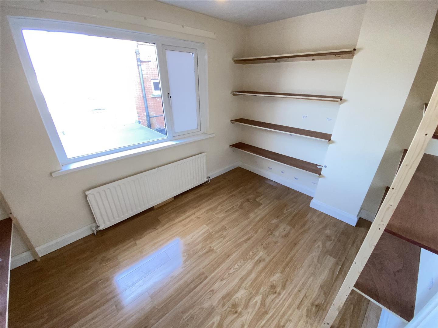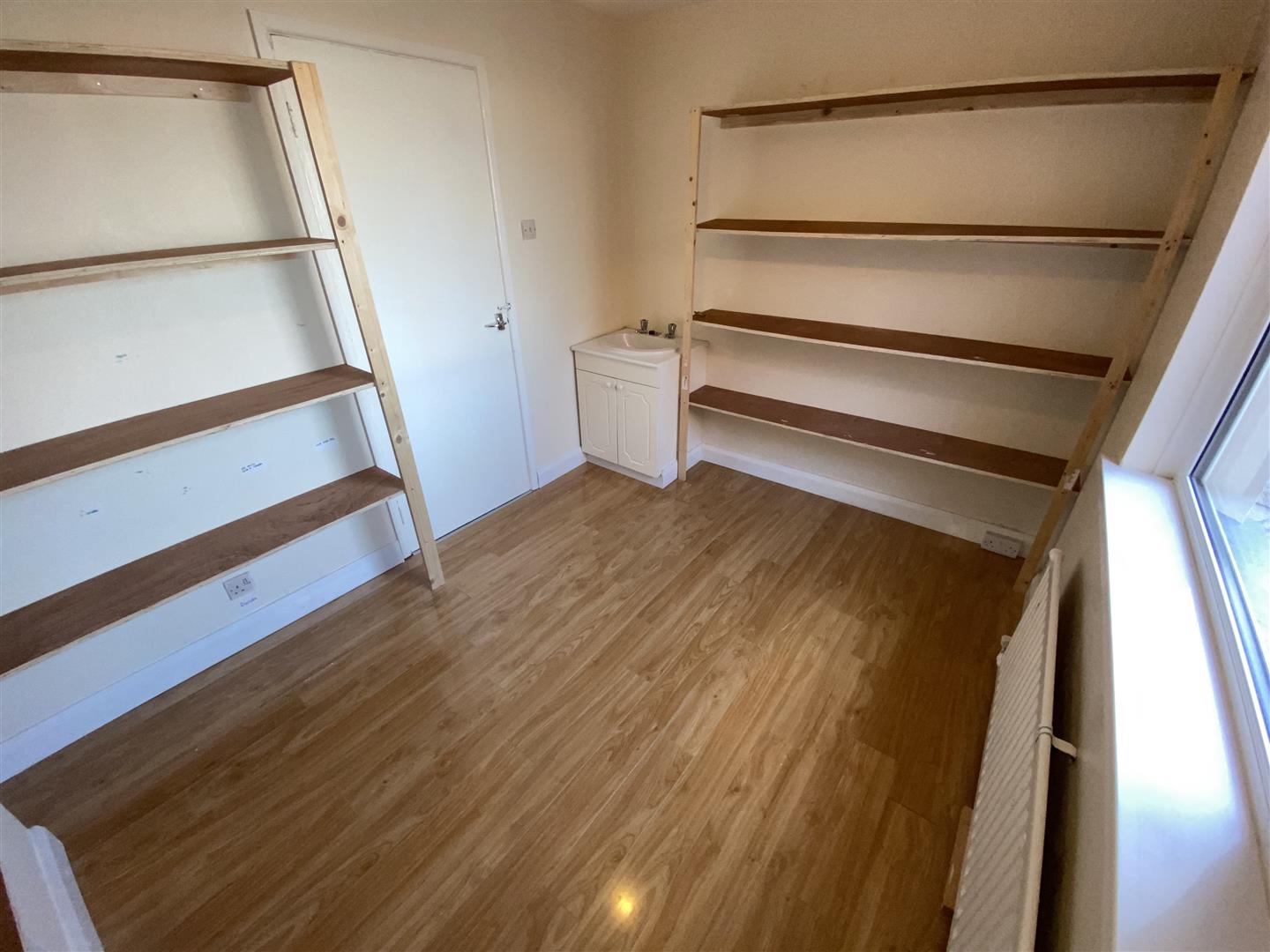 Store: - 3.3 x 2.4 (10'9" x 7'10") - with shelving, wood effect laminate flooring.