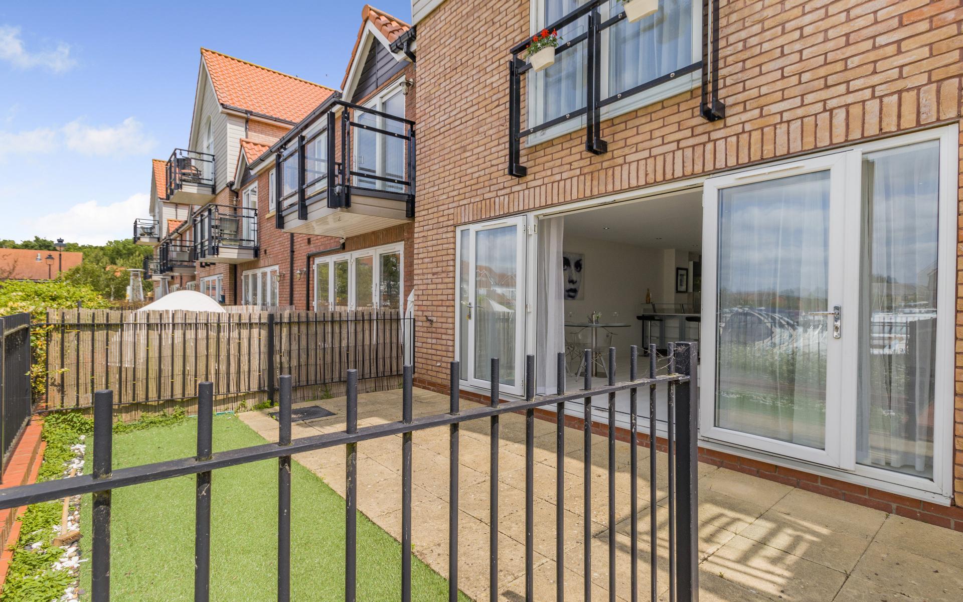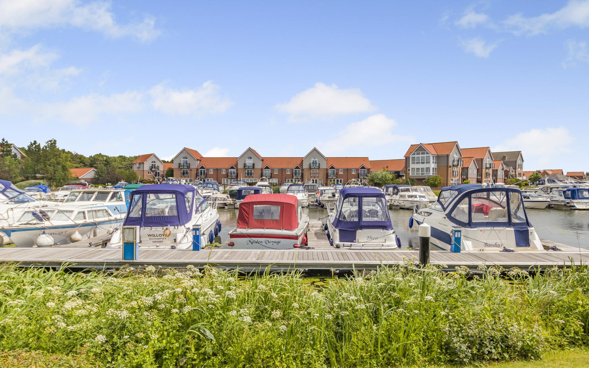 OUTSIDE The property has front & rear gardens. The front garden is principally laid to lawn with a paved footpath leading to the property entrance & seating area. The rear garden comprises of artificial grass & paved area overlooking the marina. There are two allocated parking spaces included within the letting of the property. A garage is not included within this tenancy.