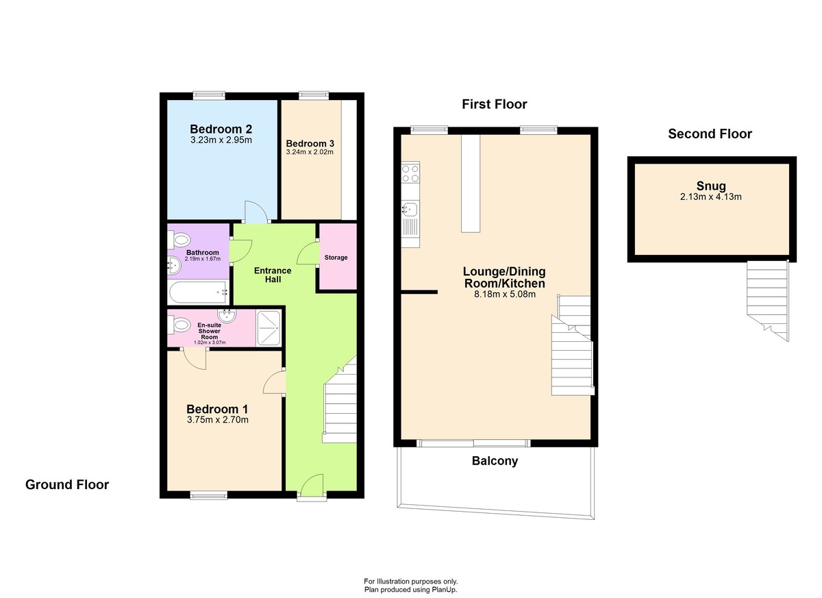 ACCOMMODATION Fully furnished throughout, this three-storey home is available for viewing to appreciate the size and specification. The internal accommodation comprises an Entrance Hall, Bedroom one with En-suite Shower Room, Bedroom two, Bedroom three, Utility Room and a separate Bathroom. Stairs lead to the First Floor Landing with Open Plan Living, Dining Room and Kitchen. To the Third Floor is a Mezzanine Office/Snug and Balcony.