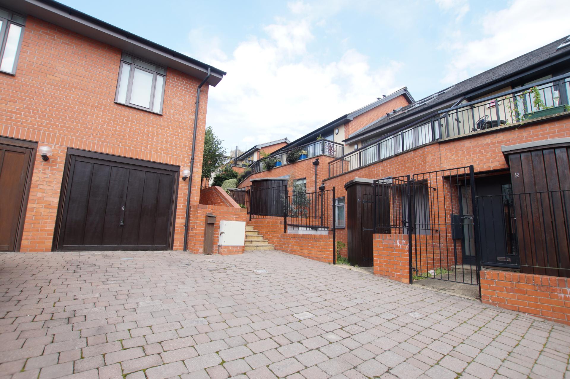 OUTSIDE The property benefits from a single garage with gated entry, a courtyard, and a balcony. Please note that due to parking restrictions within the development, parking is only permitted within the garage.