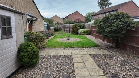 OUTSIDE A single allocated parking space is located within a share parking area. The property also benefits from a good sized garden which is principally laid to lawn with beds and boarders comprising a mix of shrubs and bushes and paved seating areas. The property also benefits from an outside store and shed.