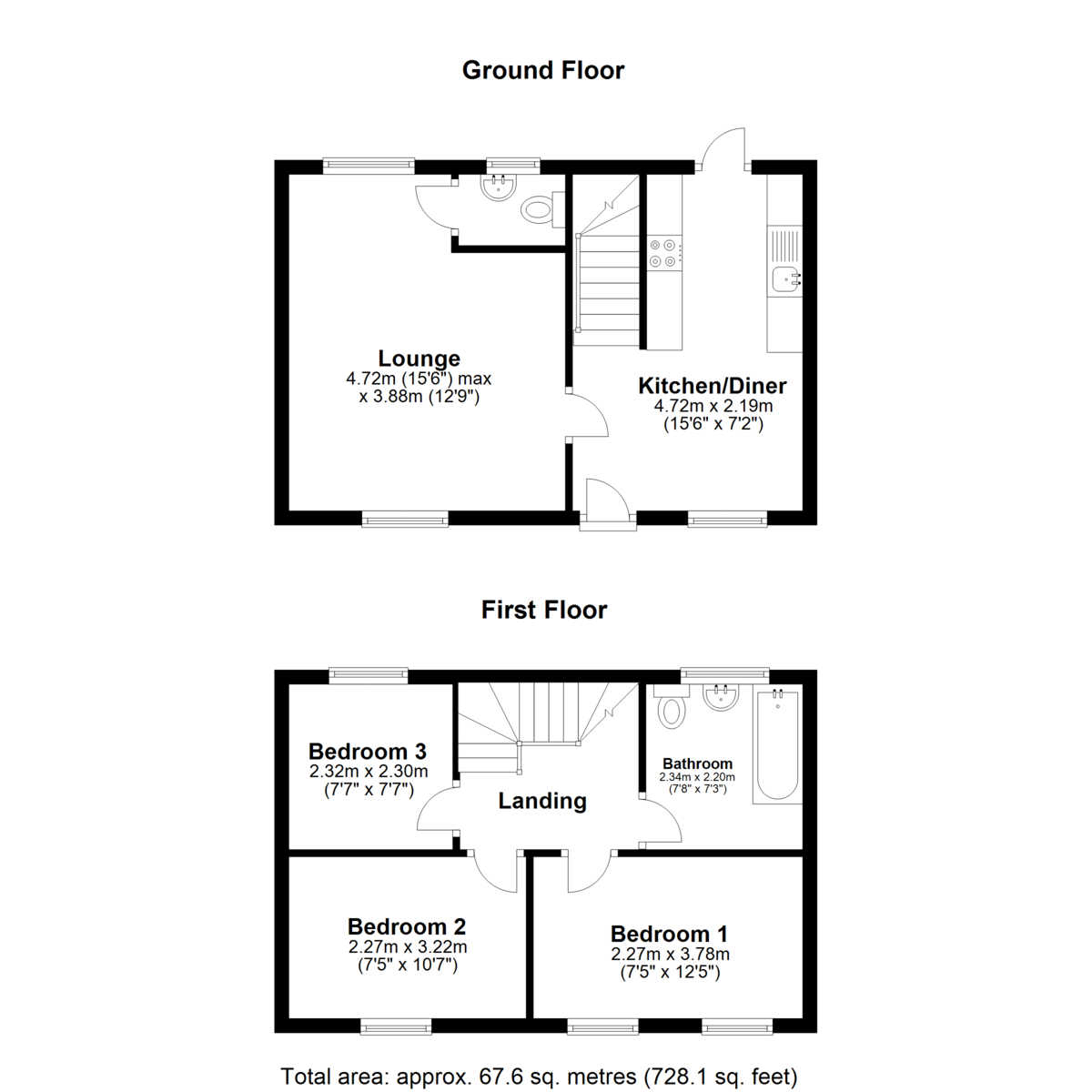 ACCOMMODATION This well presented Three Bedroom Home has been newly decorated throughout. On entry there is a spacious Dining Kitchen providing access to the Lounge, along with a downstairs WC and stairs rising to the First Floor. The Landing provides access to all Three Bedrooms, along with the Family Bathroom which is fitted with a bath and overhead shower, with additional storage available.