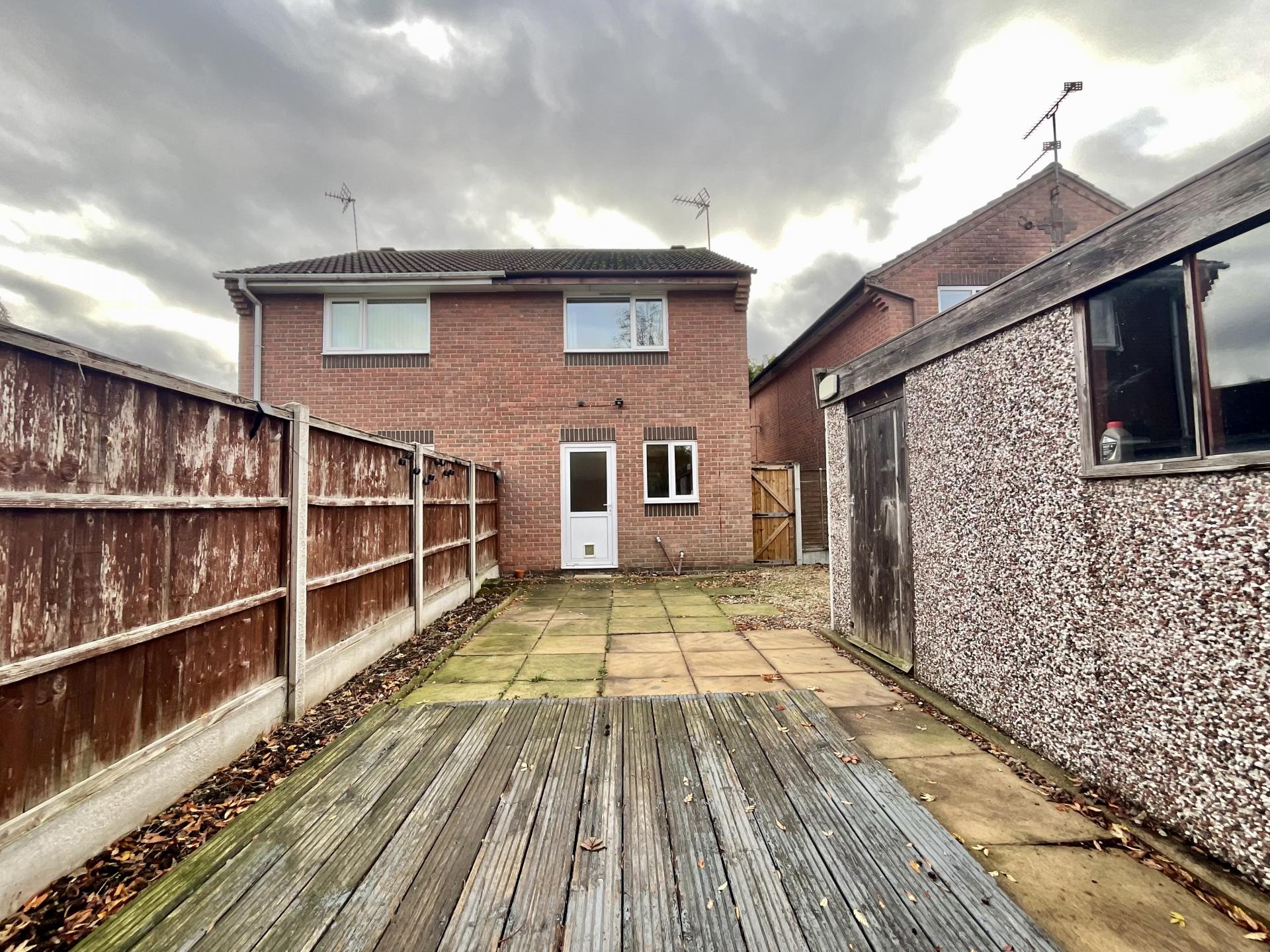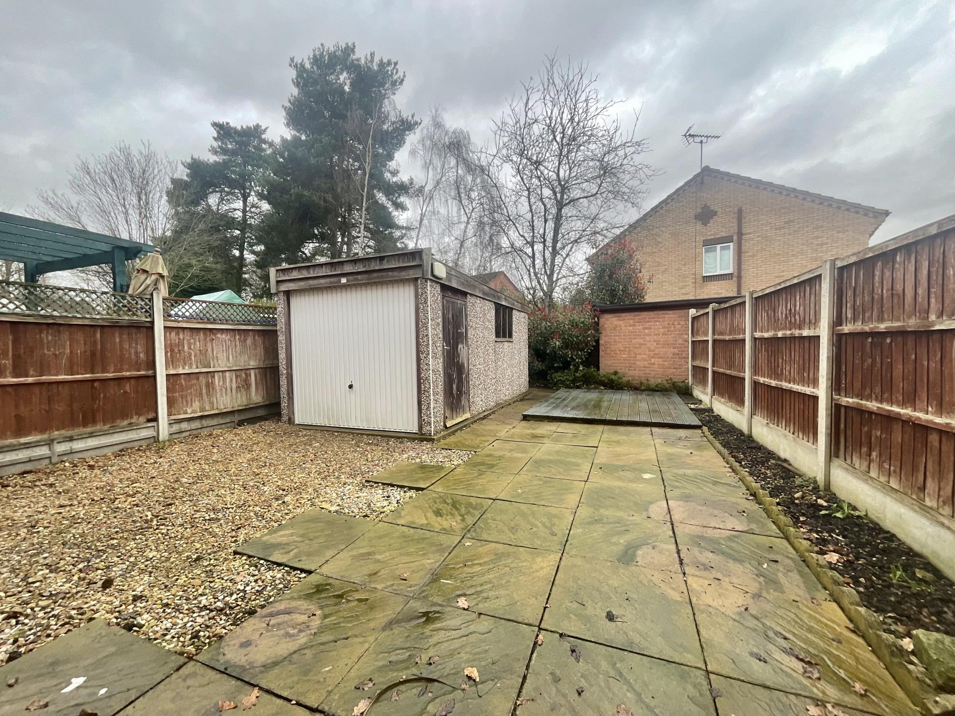 OUTSIDE Enclosed rear courtyard and AstroTurf to the front with a single garage and driveway.
