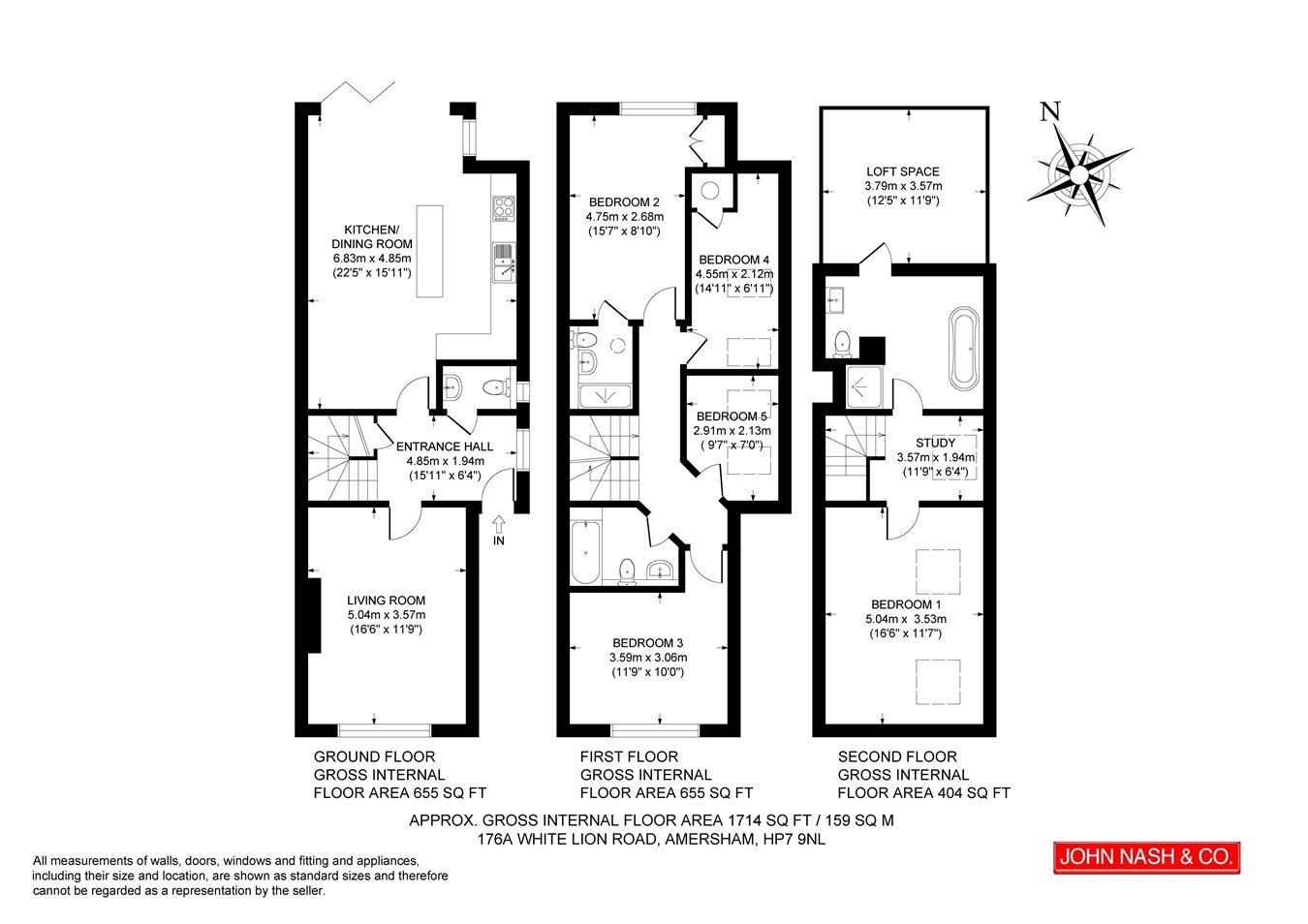 This stylish and spacious home provides flexible accommodation arranged over three floors and benefits from a large modern kitchen / dining room, sitting room with feature fireplace, downstairs cloakroom, five bedrooms (two en suite), further bathroom and study area. A driveway to the front provides parking for two cars and to the rear you will find a well maintained private garden with a small patio area and shed. EPC - B