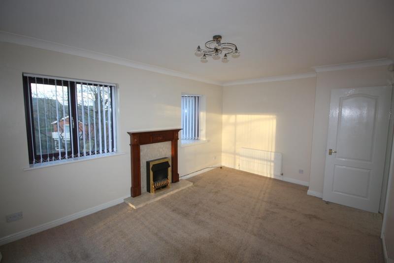 Lounge - Double glazed windows, patio door to balcony, radiator, carpet, feature fireplace