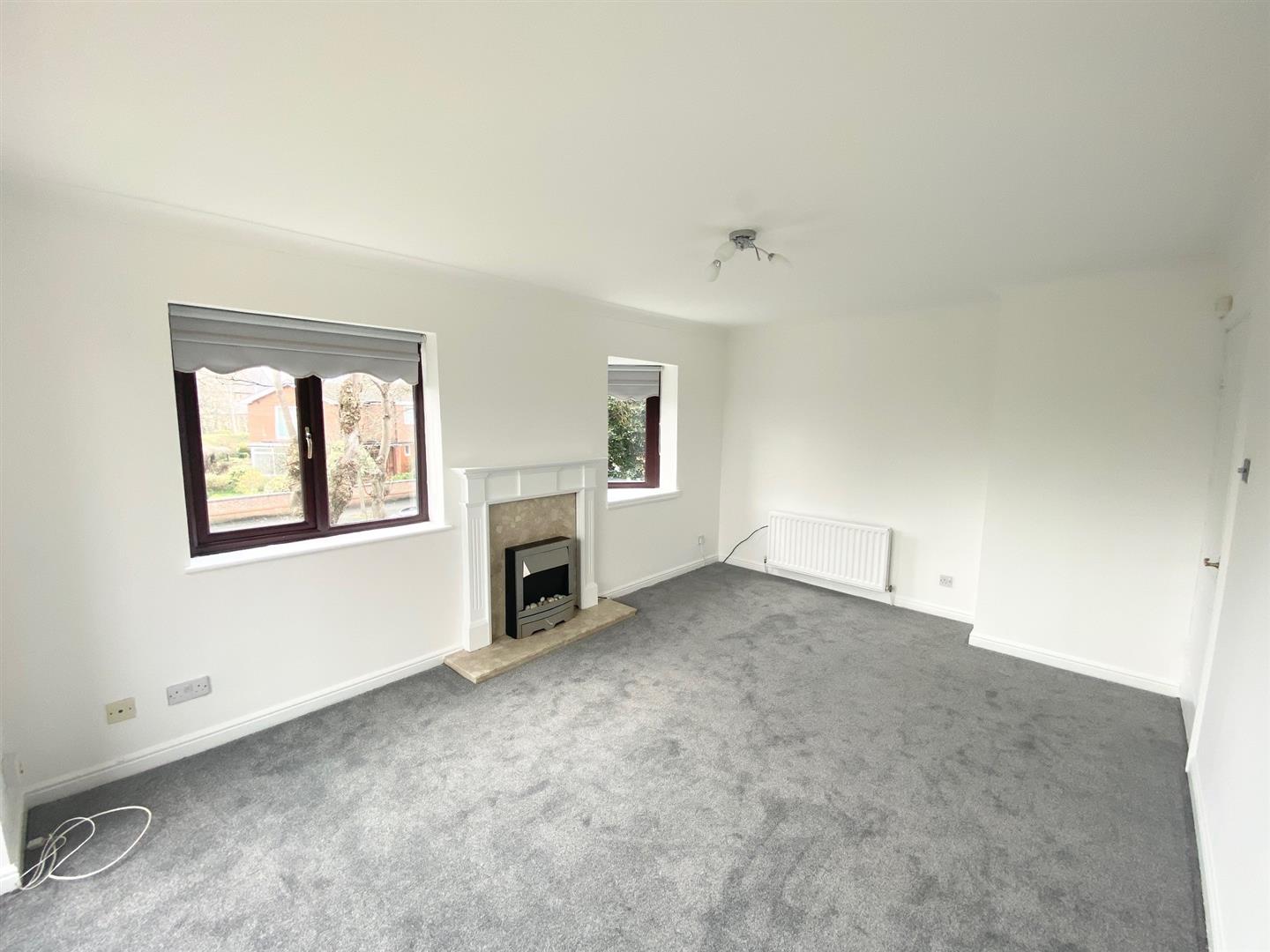 Lounge - Double glazed windows, double glazed patio door to balcony, carpet, radiator, feature fireplace with electric inset fire