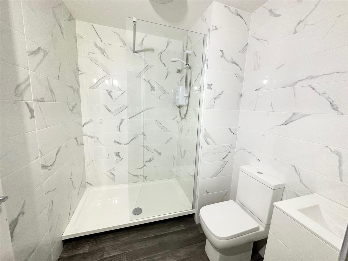 Shower Room - Large walk in shower cubical with shower, vanity sink and low level w.c.