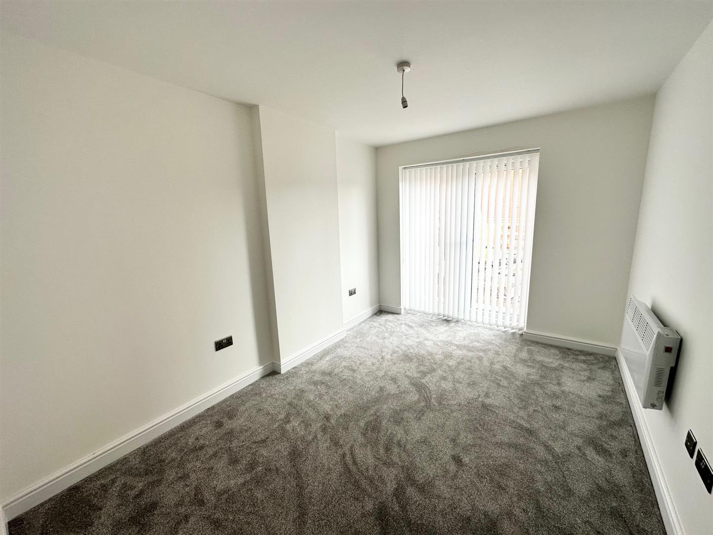 Bedroom 1 - Double glazed window, carpet and electric wall heater