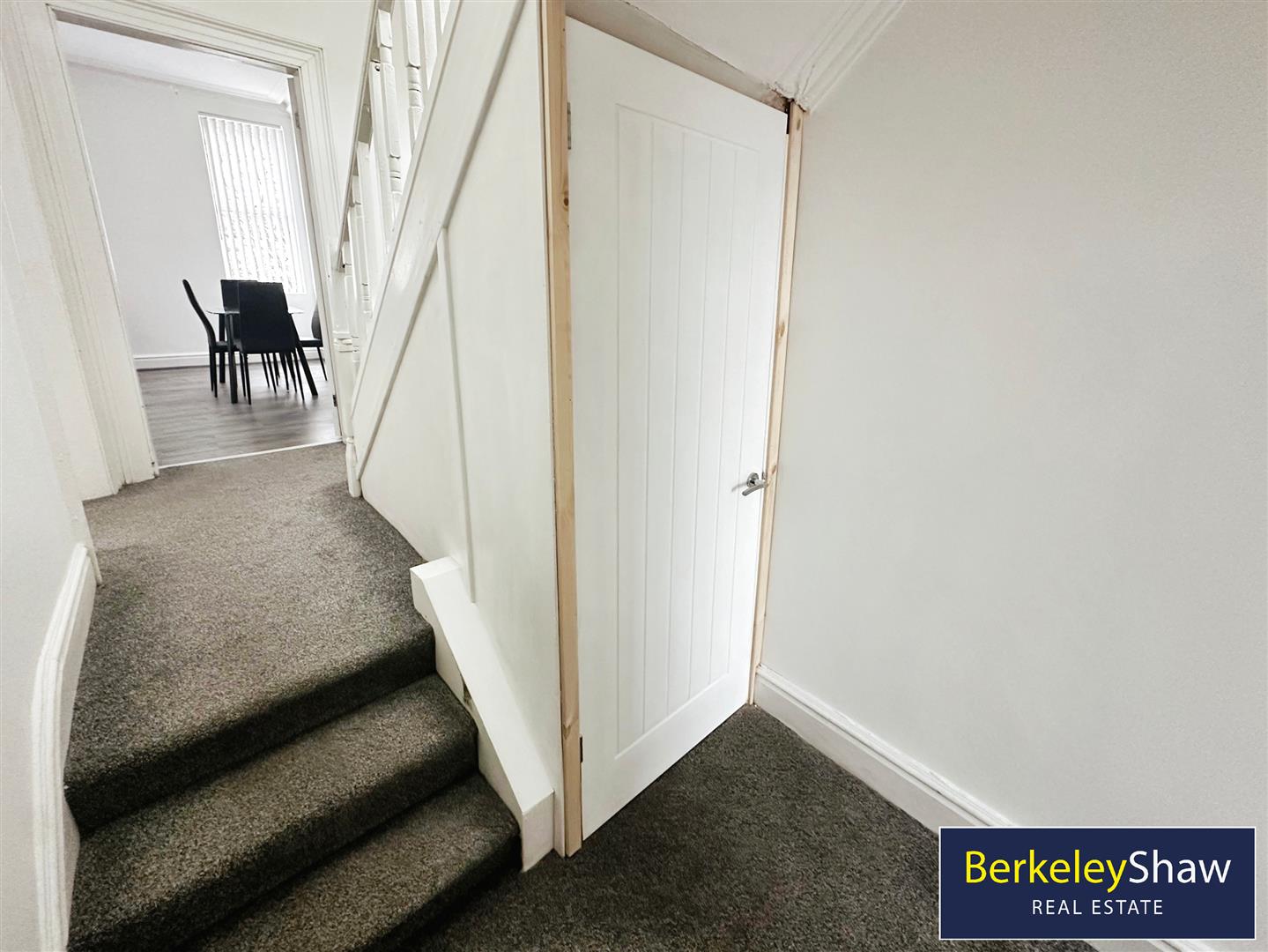 Hallway` - Entrance door, carpet, wall heater, under stairs cupboard, staircase to first floor
