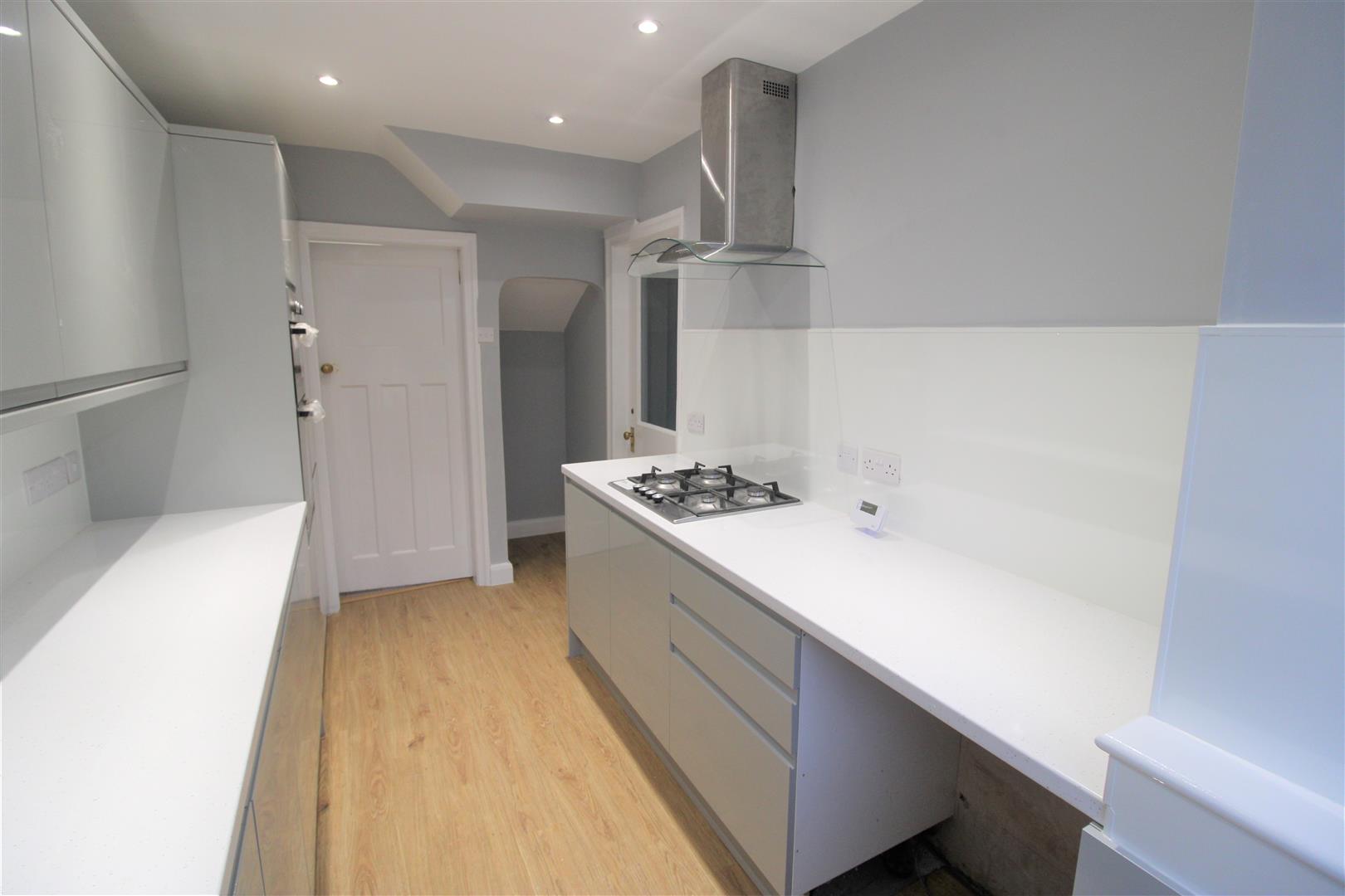Kitchen - UPVC Double glazed window, range of high gloss fitted wall and base units, single stainless steel sink with mixer taps, inset gas hob and integrated electric oven.