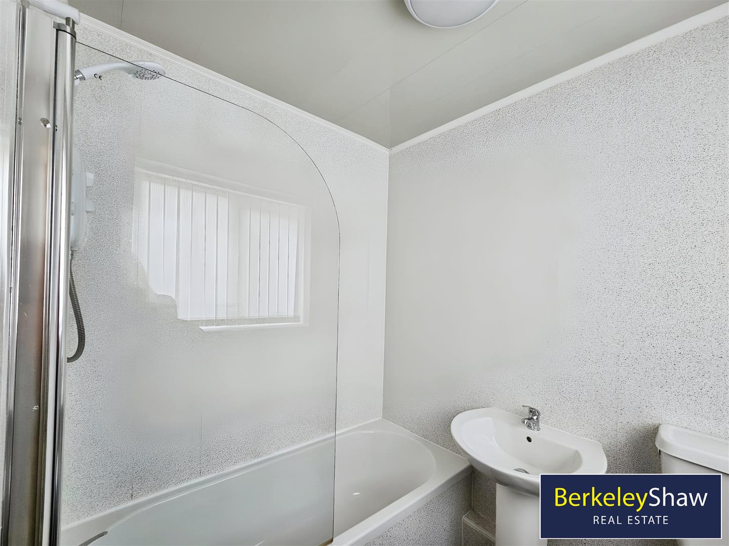 Bathroom - Double glazed window, radiator, pvc ceiling and walls bath with shower over and shower screen, sik, low level w.c.