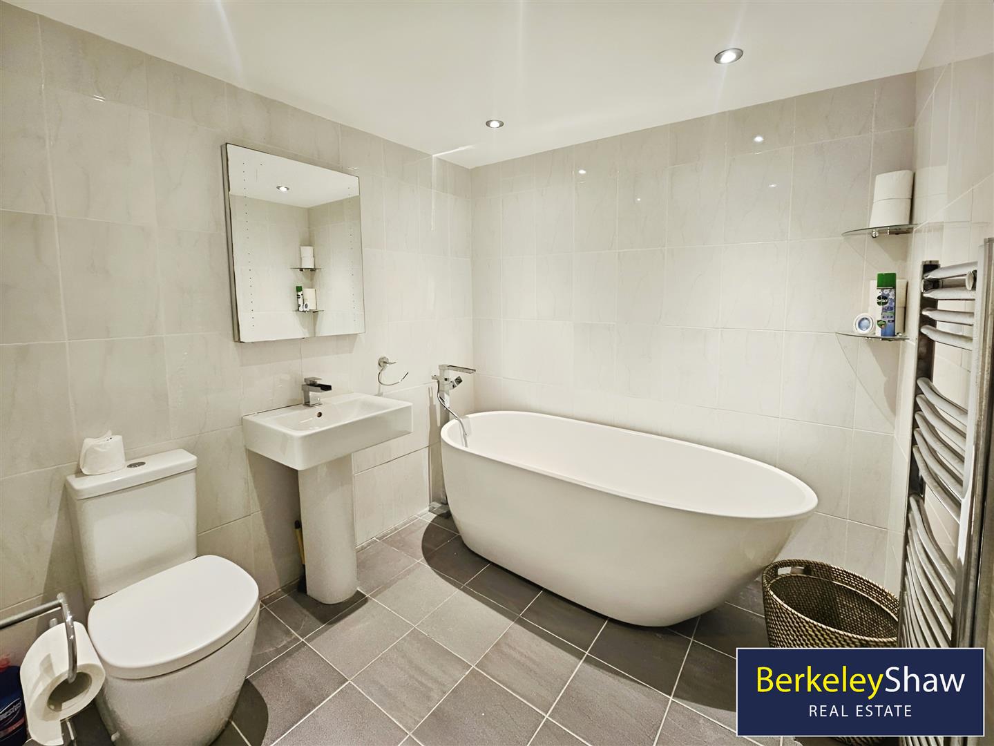 The accommodation includes a luxurious master bedroom complete with a stylish en-suite bathroom, boasting modern fittings and a convenient heated towel rail. A spacious second double bedroom offers ample storage with built-in wardrobes, ensuring comfort and practicality. The main bathroom is elegantly appointed and features a free-standing bath, providing a tranquil space to unwind.