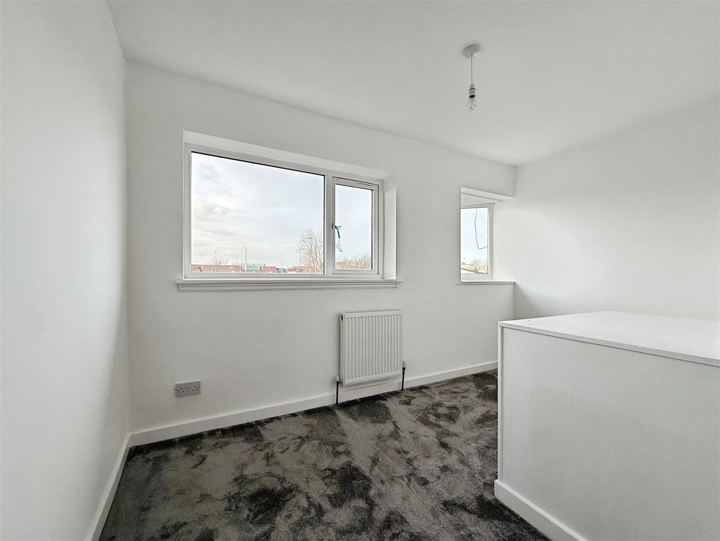 The property features a separate reception room with large windows, providing generous natural light. An open-plan kitchen with dining space and built-in pantries creates a practical area for cooking and eating, further enhanced by good natural light. The bathroom includes a free-standing bath, rain shower and heated towel rail. There are three double bedrooms, including a master bedroom, allowing flexible use for sleeping, home working or storage. Large windows throughout contribute to a bright interior. The property holds an EPC rating of C and falls within Council Tax Band A.