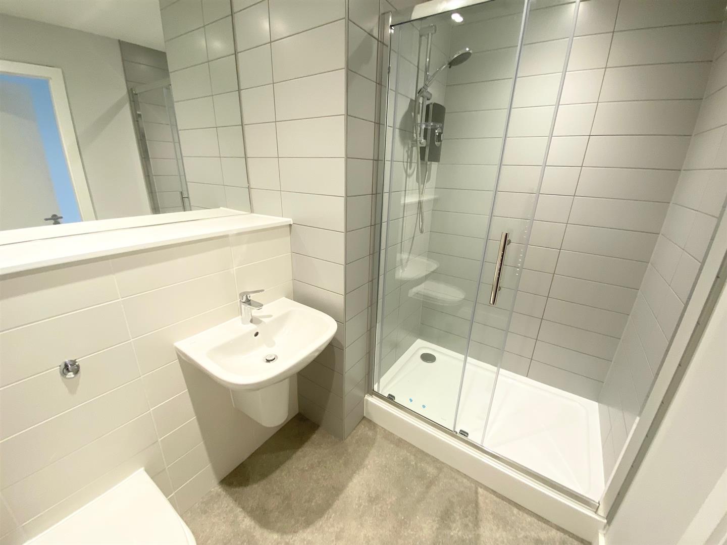 Shower Room - part tiled walls and flooring, electric towel rail, large walk in shower with glass surround, electric shower, sink and low level w.c.