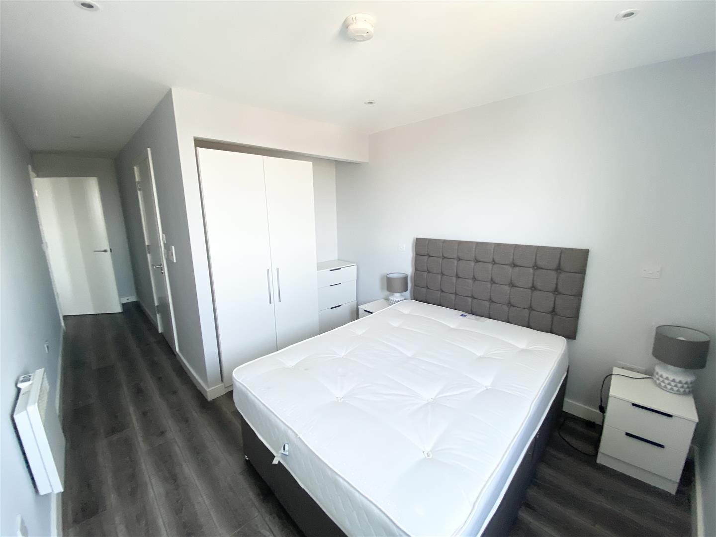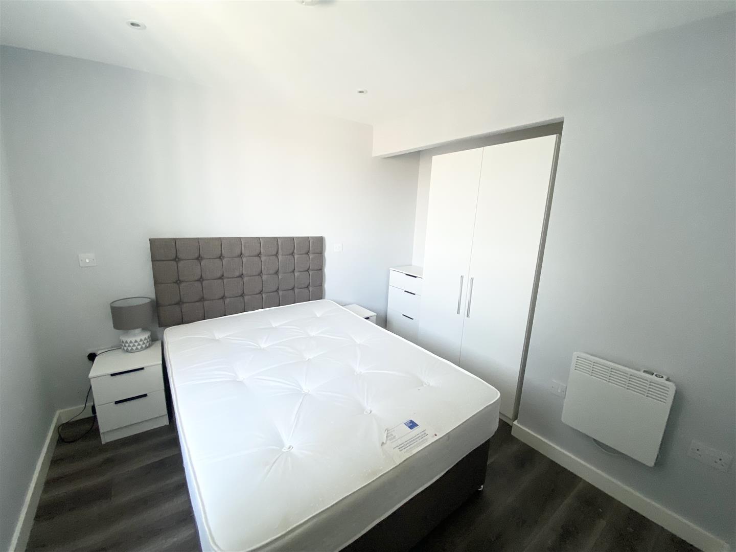 Bedroom 1 - Double glazed window, electric heater, furnishing includes: - Double bed with mattress, side tables, chest of drawers, wardrobe