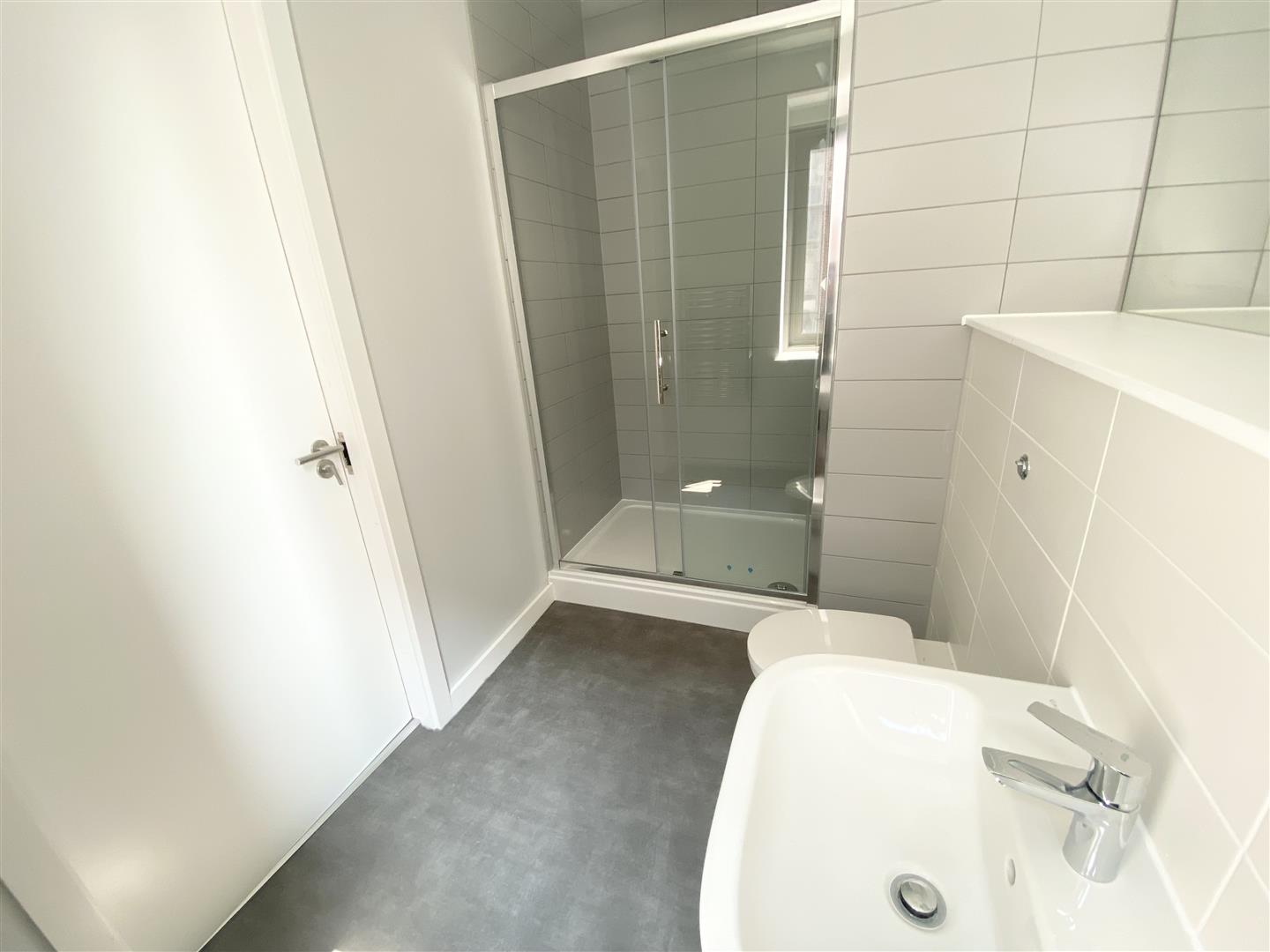 Shower Room - Part tiled, large shower base, glass enclosure, sink, low level w.c. heated towel rail, double glazed window