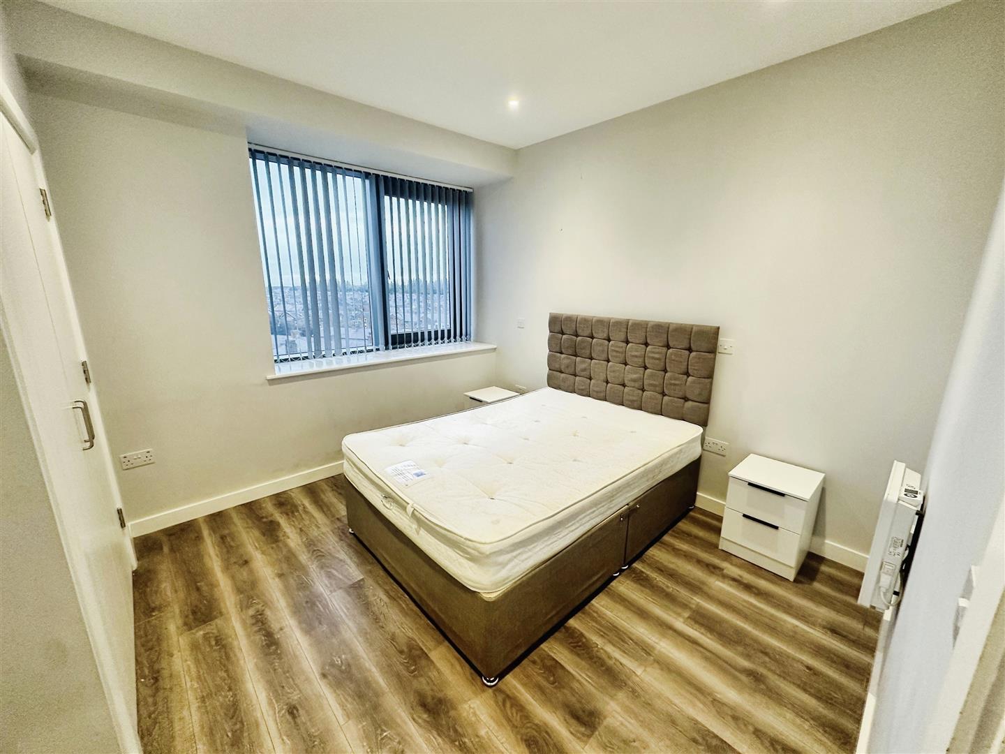 Bedroom - Double glazed window, electric heater, furnishing includes: - Double bed with mattress, side tables, chest of drawers, built in wardrobes