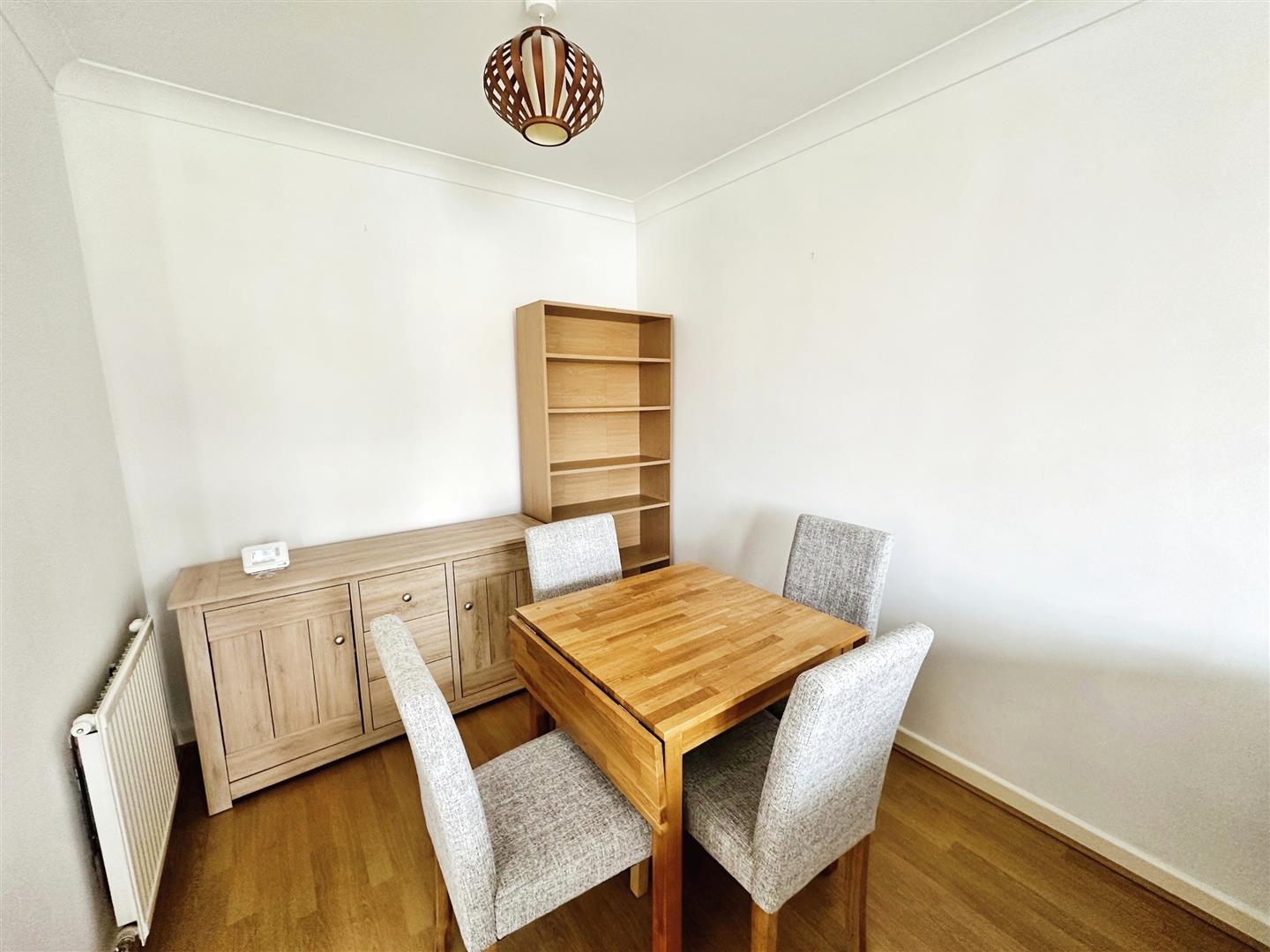 Lounge Diner - Double glazed window, radiator, wooden floor, furnishings include L - Shaped sofa, coffee table, tv cabinet, side board table and 4 chairs, book shelf