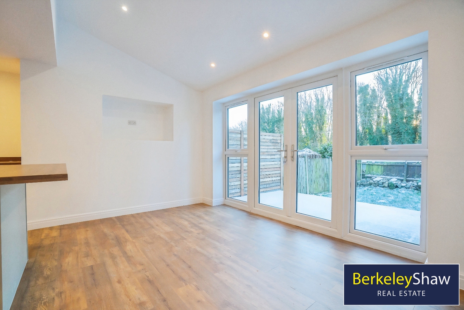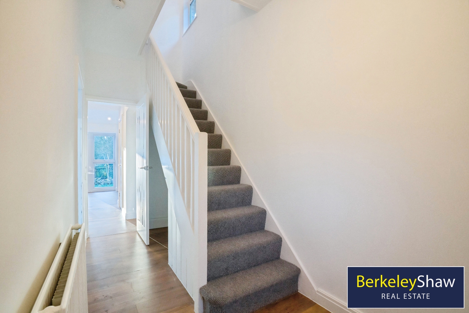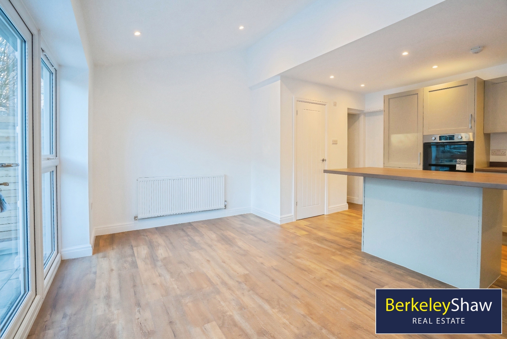 This property is thoughtfully designed with families in mind. The interior boasts an open-plan kitchen which perfectly blends cooking, dining, and convivial living. Featuring a spacious kitchen island, generous dining space, and ample natural light, this modern kitchen is ideal for hosting family meals and entertaining guests. The separate reception room is enhanced by large windows, creating a bright and airy atmosphere ideal for relaxation. For added convenience, a downstairs WC is provided.